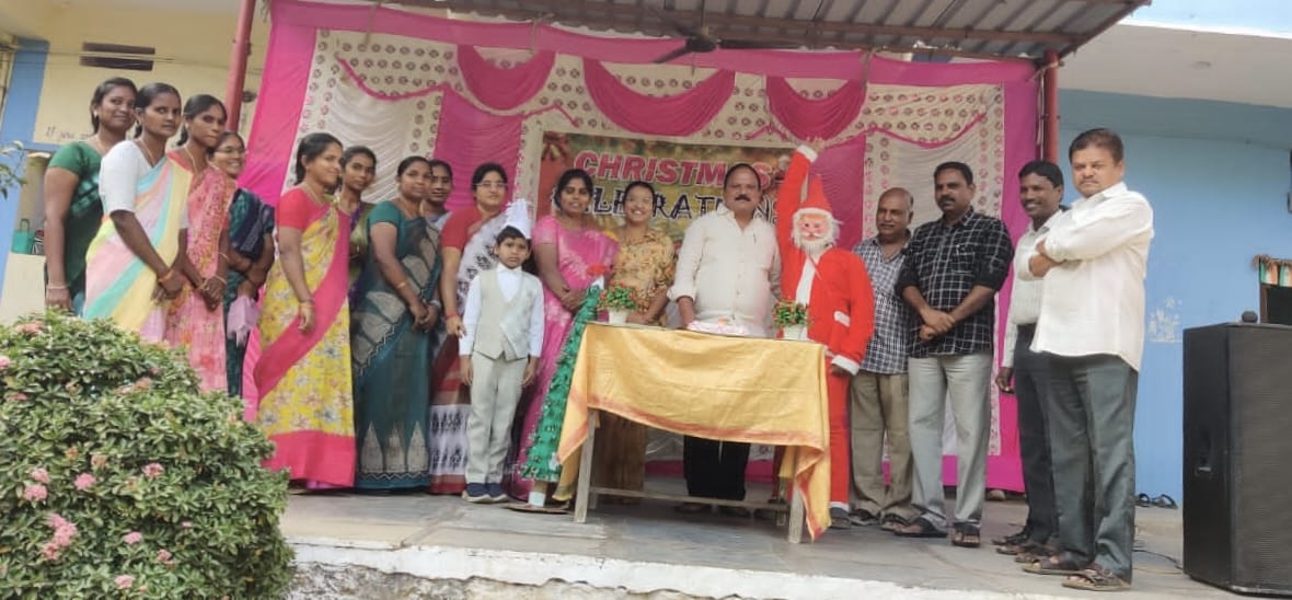 శాంతాక్లాజ్ వేష ధారణ లో పిల్లలు ఆకట్టుకున్నారు. కేక్ కట్ చేసి సంబరాలు నిర్వహించారు.