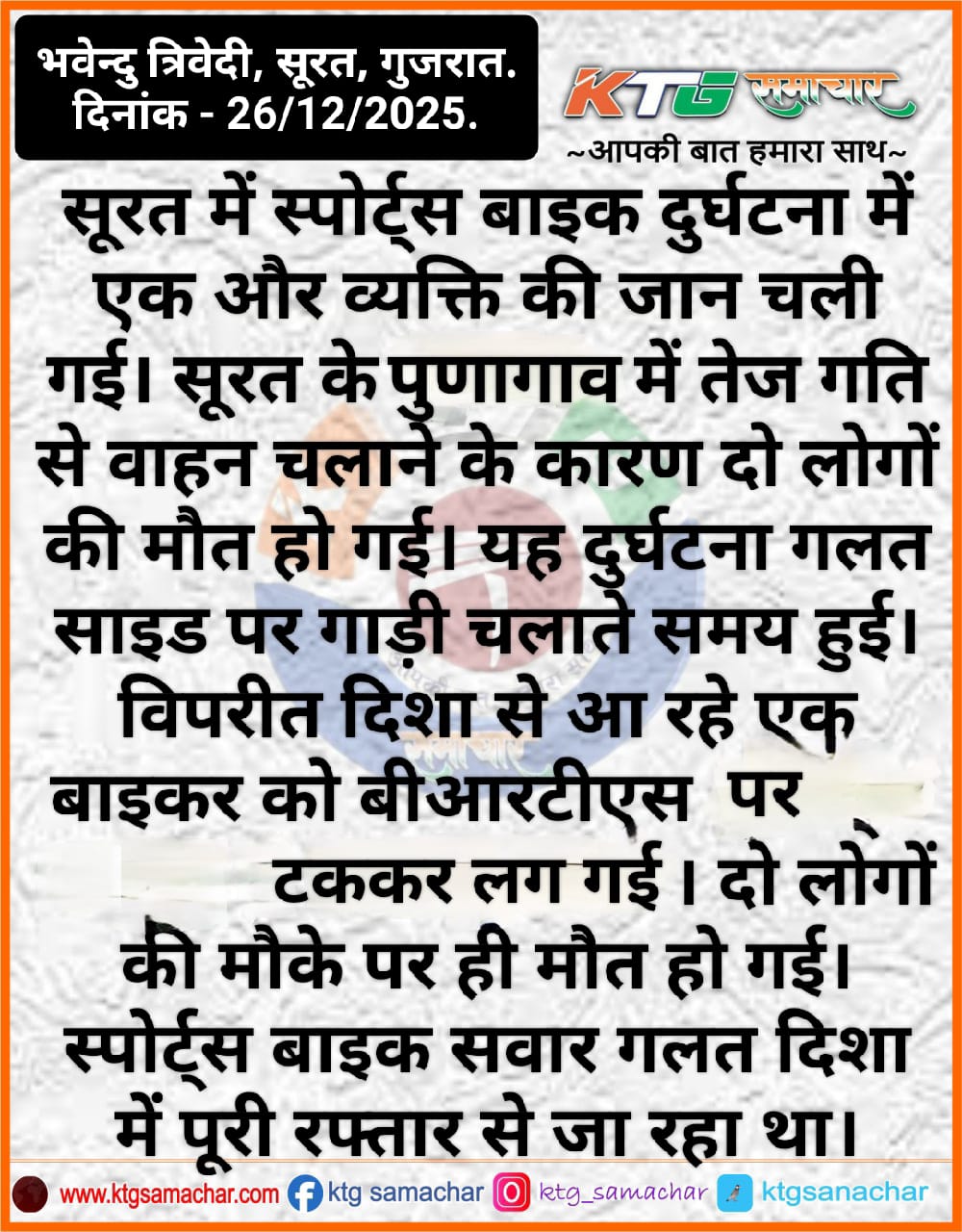 सूरत में स्पोर्टस बाइक दुर्घटना में एक और की जान चली गई।
