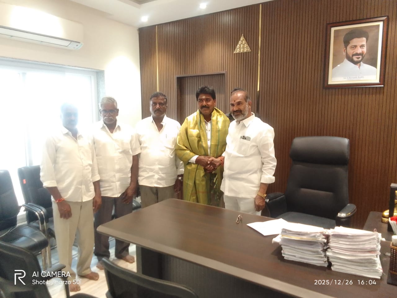 రాజన్న సిరిసిల్ల జిల్లా ఎల్లారెడ్డిపేట మండలం లోని రాజన్నపేట సర్పంచ్ బాపురెడ్డి అక్కపల్లి మాజీ సర్పంచ్ మందాటి దేవేందర్ యాదవ్ కాంగ్రెస్ పార్టీ గ్రామ శాఖ అధ్యక్షుడు జంగా భూమ్ రెడ్డి జంకె జనార్దన్ రెడ్డి ప్రభుత్వ విప్ ఆది శ్రీనివాసును మర్యాదపూర్వకంగా కలిశారు గ్రామపంచాయతీలకు నిధులు మంజూరు చేయాలని కోరారు