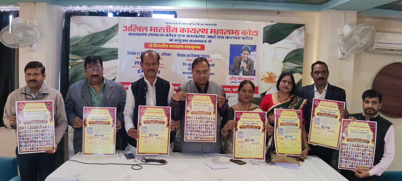 कोटा। सामाजिक समरसता, सांस्कृतिक विरासत और युवा पीढ़ी को जोड़ने के उद्देश्य से अखिल भारतीय कायस्थ महासभा कोटा, कायस्थ समाज कोटा एवं कायस्थ आर्ट एंड कल्चर कोटा के संयुक्त तत्वावधान में 27-28 दिसम्बर 2025 को एल.बी.एस. कैंपस, महावीर नगर विस्तार योजना, कोटा में दो दिवसीय भव्य "कायस्थ महाकुंभ" एवं निःशुल्क युवक-युवती परिचय सम्मेलन का आयोजन किया जा रहा है।