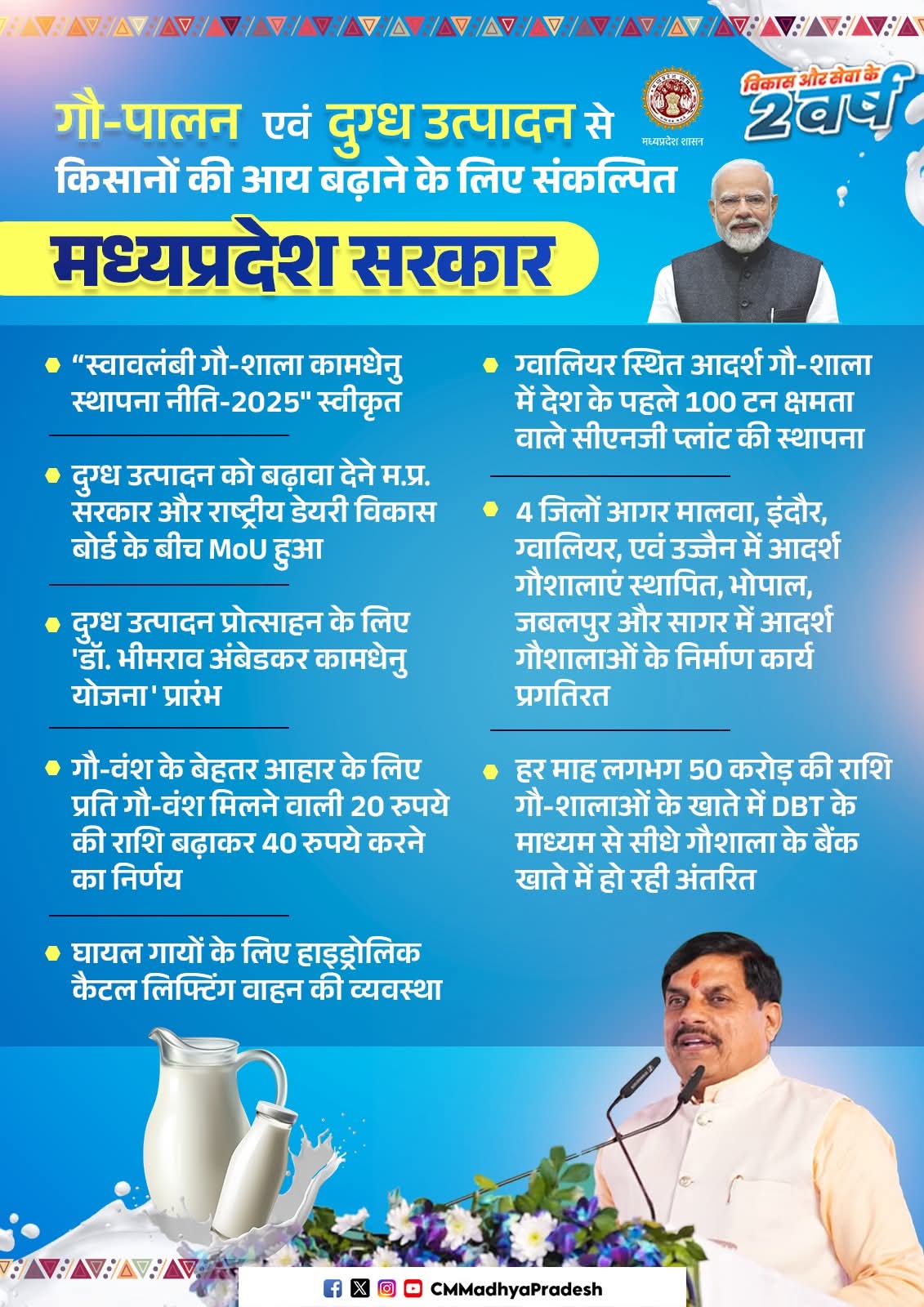 गौ-पालन एवं दुग्ध उत्पादन को बढ़ावा देकर किसानों की आय में वृद्धि के लिए निरंतर कार्य कर रही है मध्यप्रदेश सरकार।