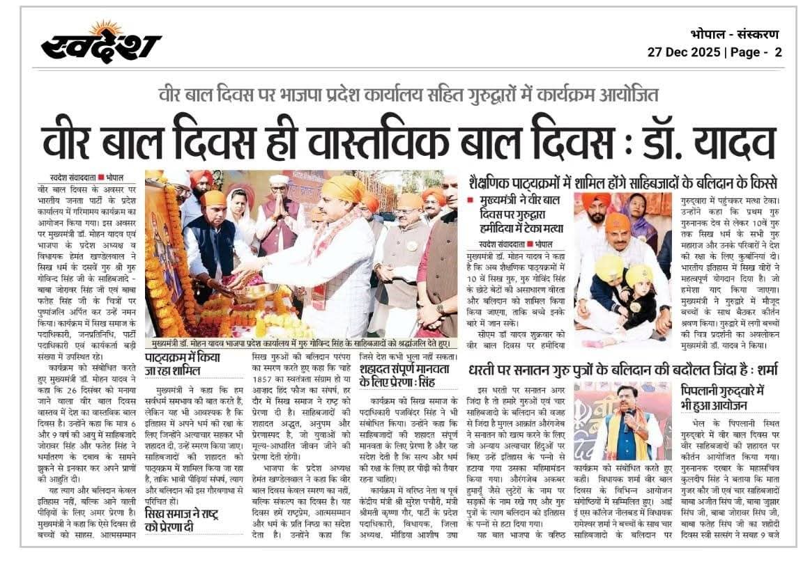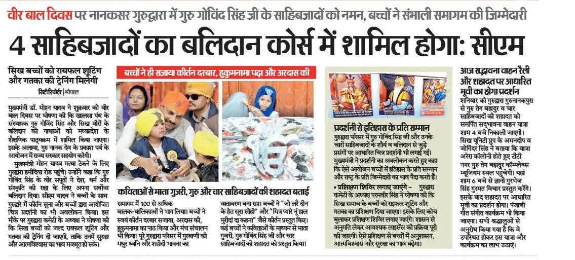 सच्चाई और धर्म की रक्षा के लिए वीर साहिबजादों के बलिदान को जन-जन तक पहुंचाने की आवश्यकता : मुख्यमंत्री डॉ. मोहन यादव