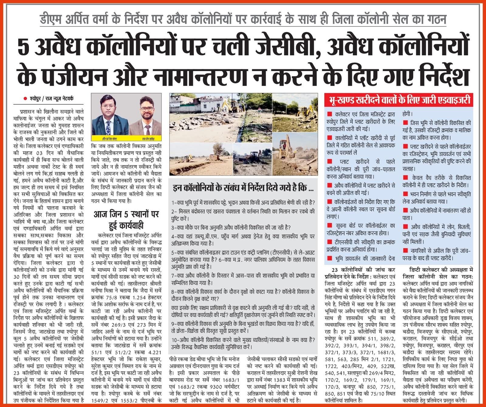 डीएम श्री Arpit Verma IAS के निर्देश पर अवैध कॉलोनियों पर कार्रवाई के साथ ही जिला कॉलोनी सेल का गठन