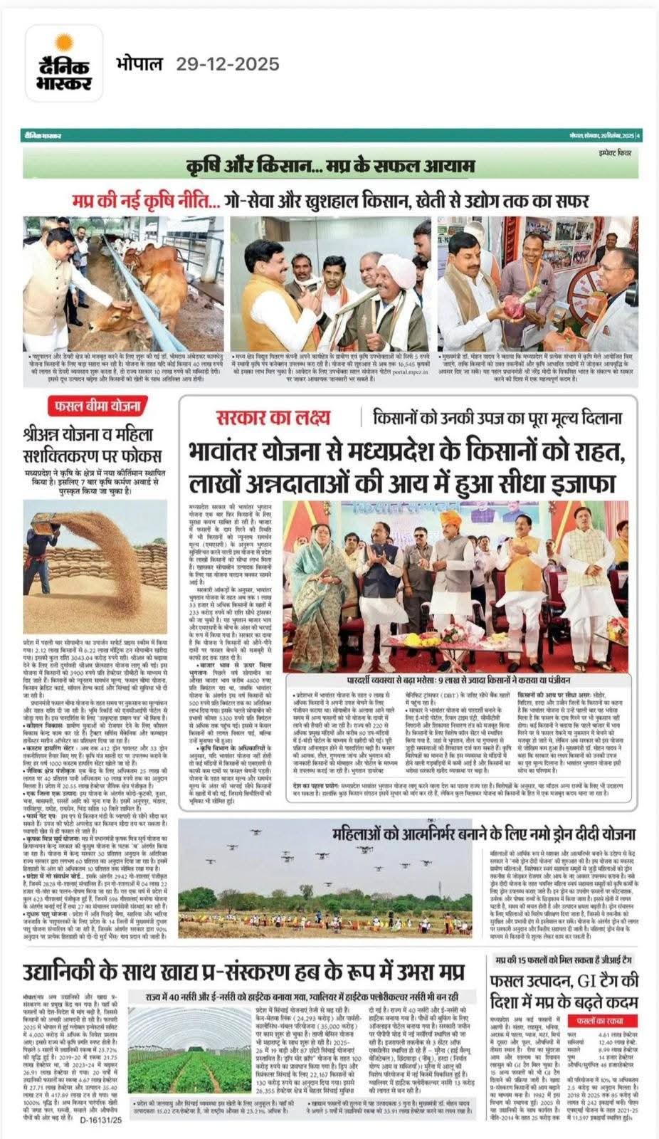 🔹भावान्तर योजना से मध्यप्रदेश के किसानों को राहत, लाखों अन्नदाताओं की आय में हुआ सीधा इजाफा