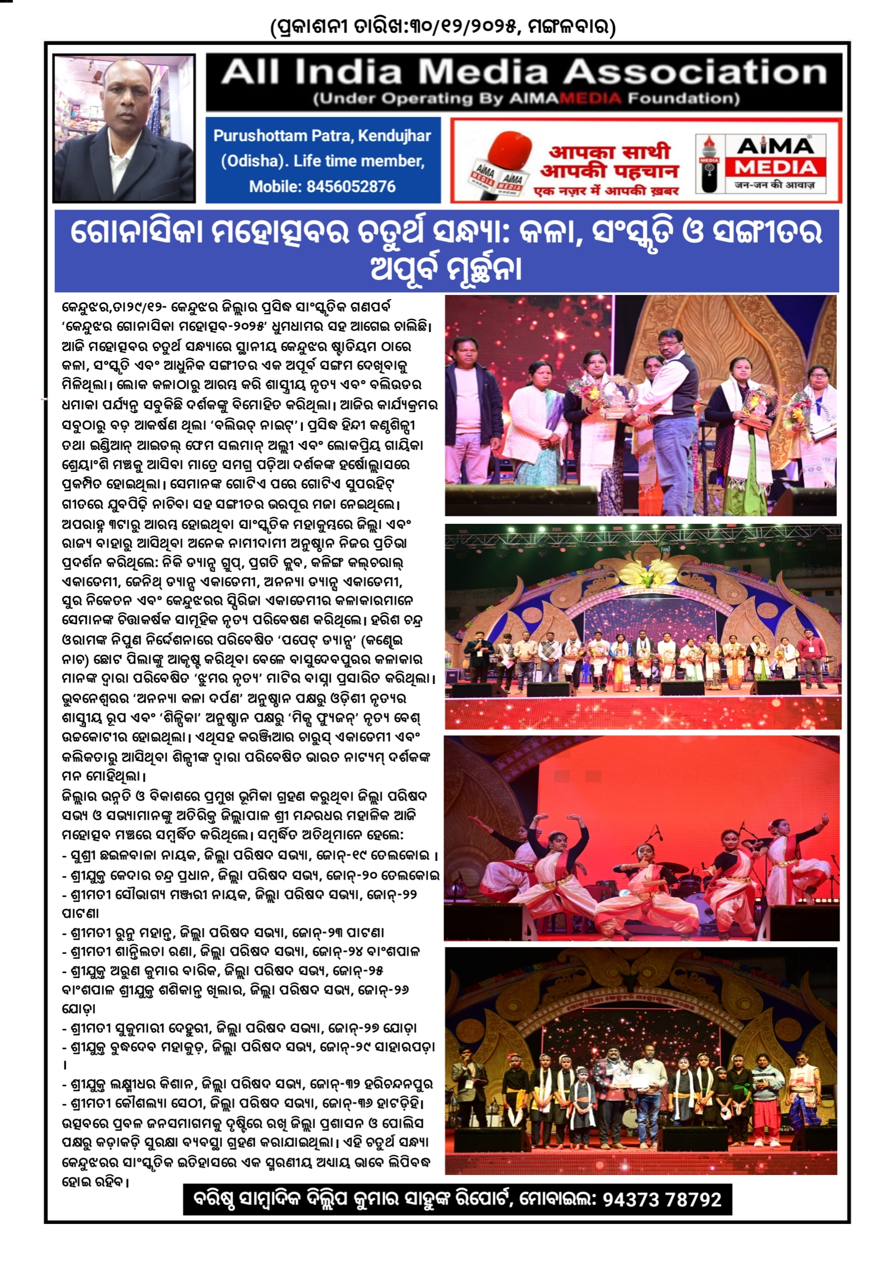 ଗୋନାସିକା ମହୋତ୍ସବର ଚତୁର୍ଥ ସନ୍ଧ୍ୟା: କଳା, ସଂସ୍କୃତି ଓ ସଙ୍ଗୀତର ଅପୂର୍ବ ମୂର୍ଚ୍ଛନା।