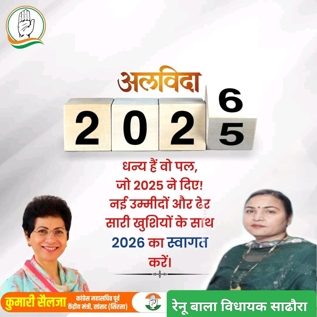 कपुरी :- हल्का सधौरा विधायक मैडम रेणु बाला जी नें सन 2025 को "अलविदा" और 2026 को "शुभ आगमन" ऐसे कहाँ, "#अलविदा_2025