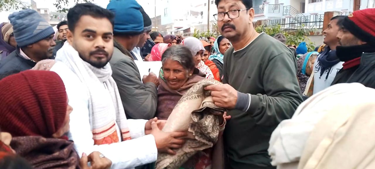 आदर्श नगर पंचायत बृजमनगंज के चेयरमैन राकेश जायसवाल ने 3000 जरूरतमंदों में बांटे कम्बल