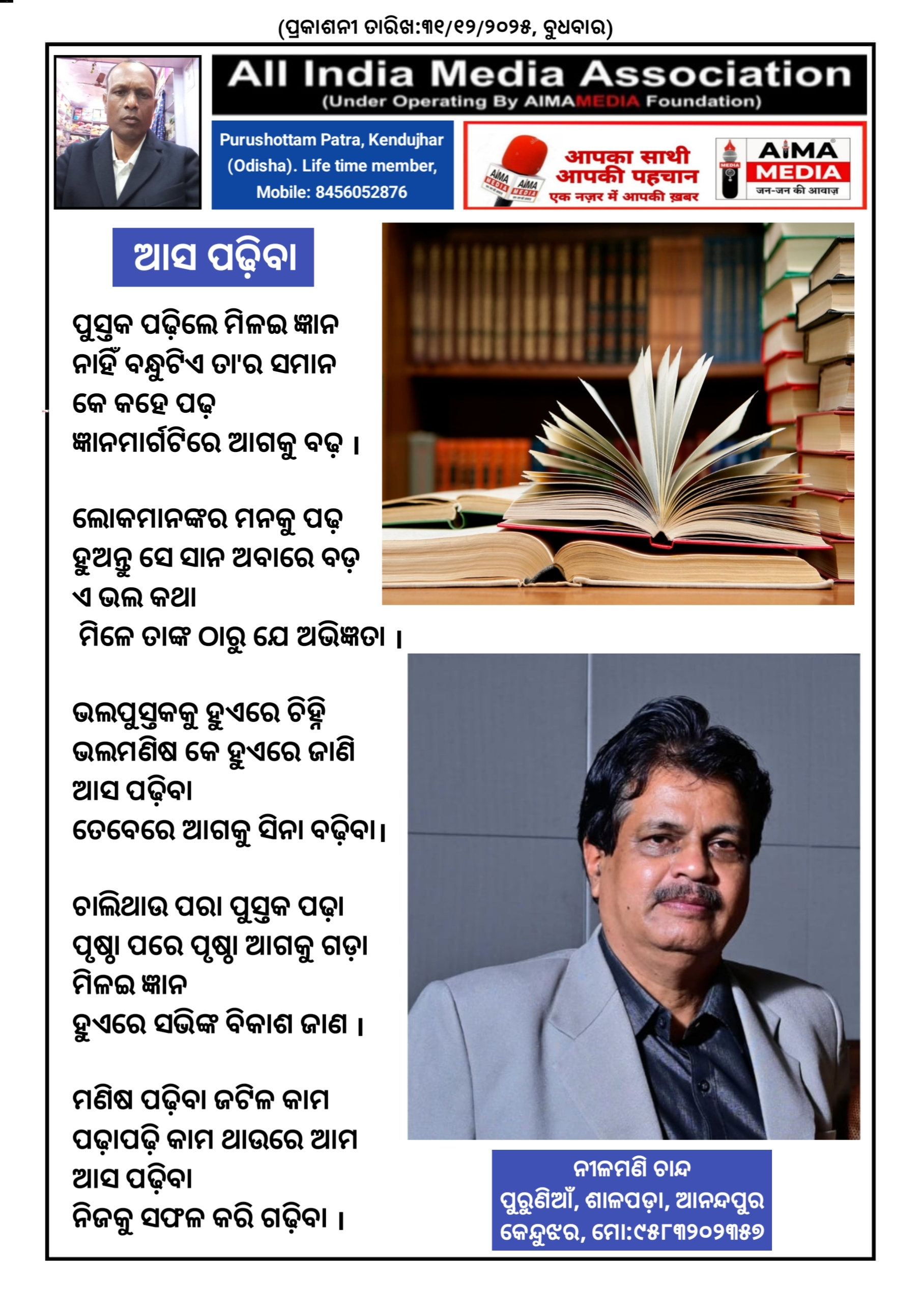 ଆସ ପଢ଼ିବା - ନୀଳମଣି ଚାନ୍ଦ ଙ୍କ ଦ୍ଵାରା ରଚିତ କବିତା।