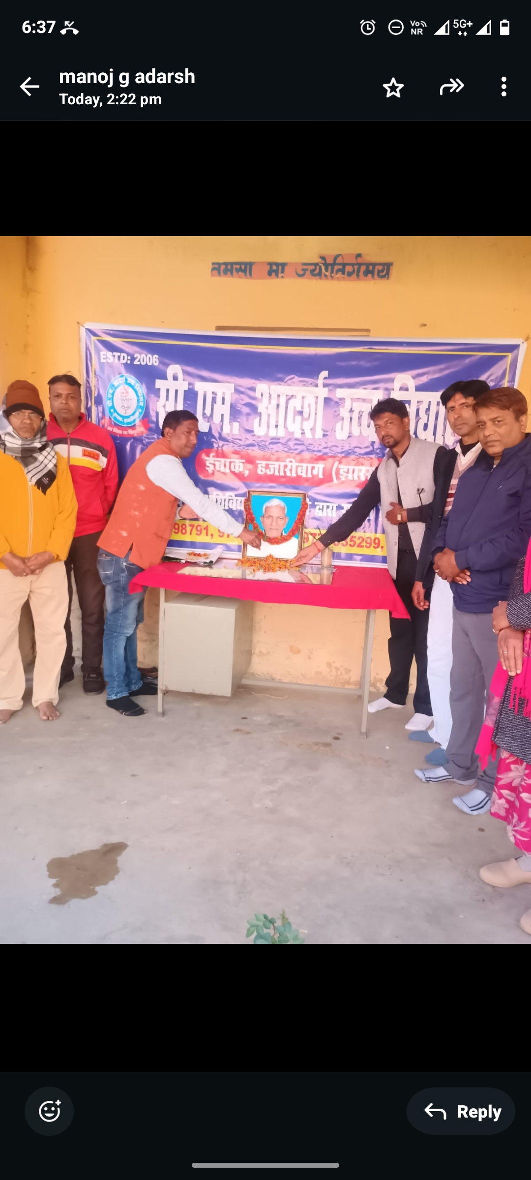 इचाक प्रखंड अंतर्गत गीता विकास परिषद द्वारा संचालित सी.एम. आदर्श उच्च विद्यालय इचाक, हजारीबाग में पूर्व विधायक स्वर्गीय रामेश्वर महत्था जी की पुण्यतिथि मनाई गई ।