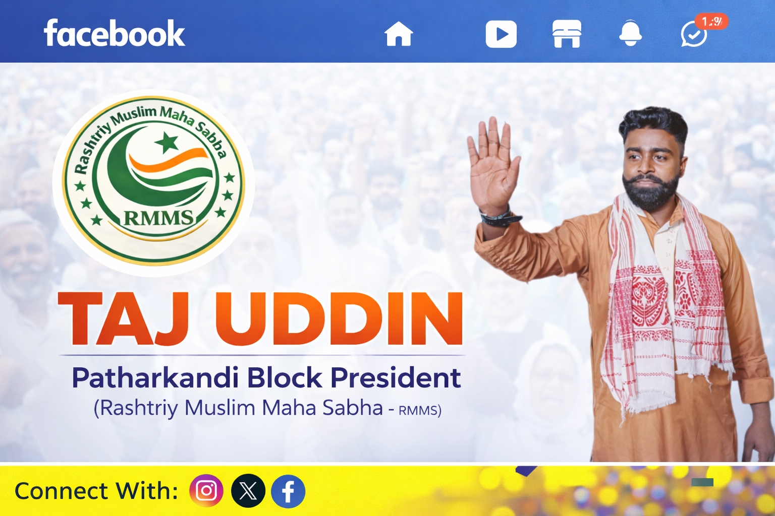 Taj Uddin is a well-known and respected name in the political and social landscape of the Patharkandi Block. As the Block President of the Rashtriy Muslim Maha Sabha (RMMS), he is not merely an organizational leader today, but has emerged as a symbol of emotion, trust, and hope for the Muslim community.