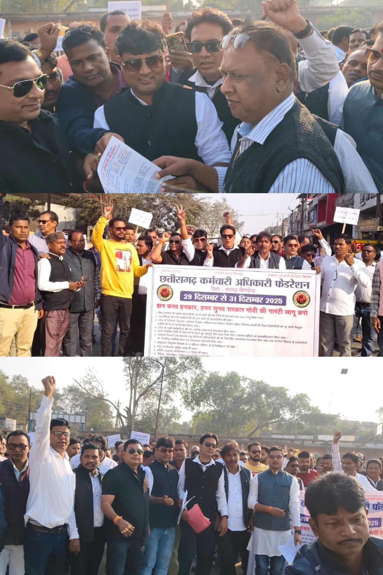 छत्तीसगढ़ कर्मचारी–अधिकारी फेडरेशन के आह्वान पर शासन द्वारा घोषित वादों और गारंटियों को लागू कराने की मांग को लेकर सारंगढ़ में हजारों की संख्या में कर्मचारियों ने जोरदार जंगी रैली निकाली। यह रैली “मोदी की गारंटी लागू करो” अभियान के तहत आयोजित की गई, जिसमें विभिन्न विभागों के कर्मचारी एवं अधिकारी बड़ी संख्या में शामिल हुए। रैली के उपरांत कर्मचारियों ने मुख्यमंत्री के नाम अपर कलेक्टर को ज्ञापन सौंपकर अपनी मांगों पर शीघ्र निर्णय लेने की मांग की।