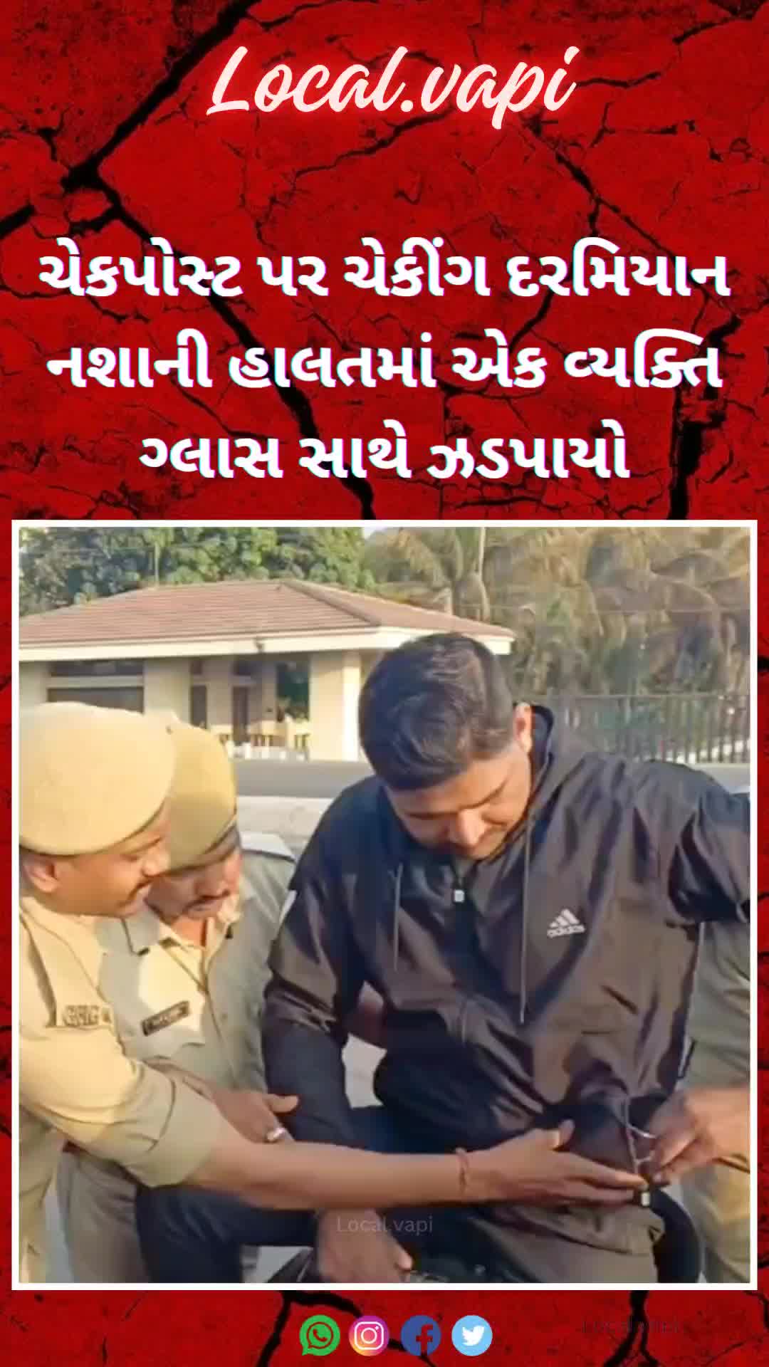 ચેકપોસ્ટ પર ચેકીંગ દરમિયાન નશાની હાલતમાં એક વ્યક્તિ ગ્લાસ સાથે ઝડપાયો