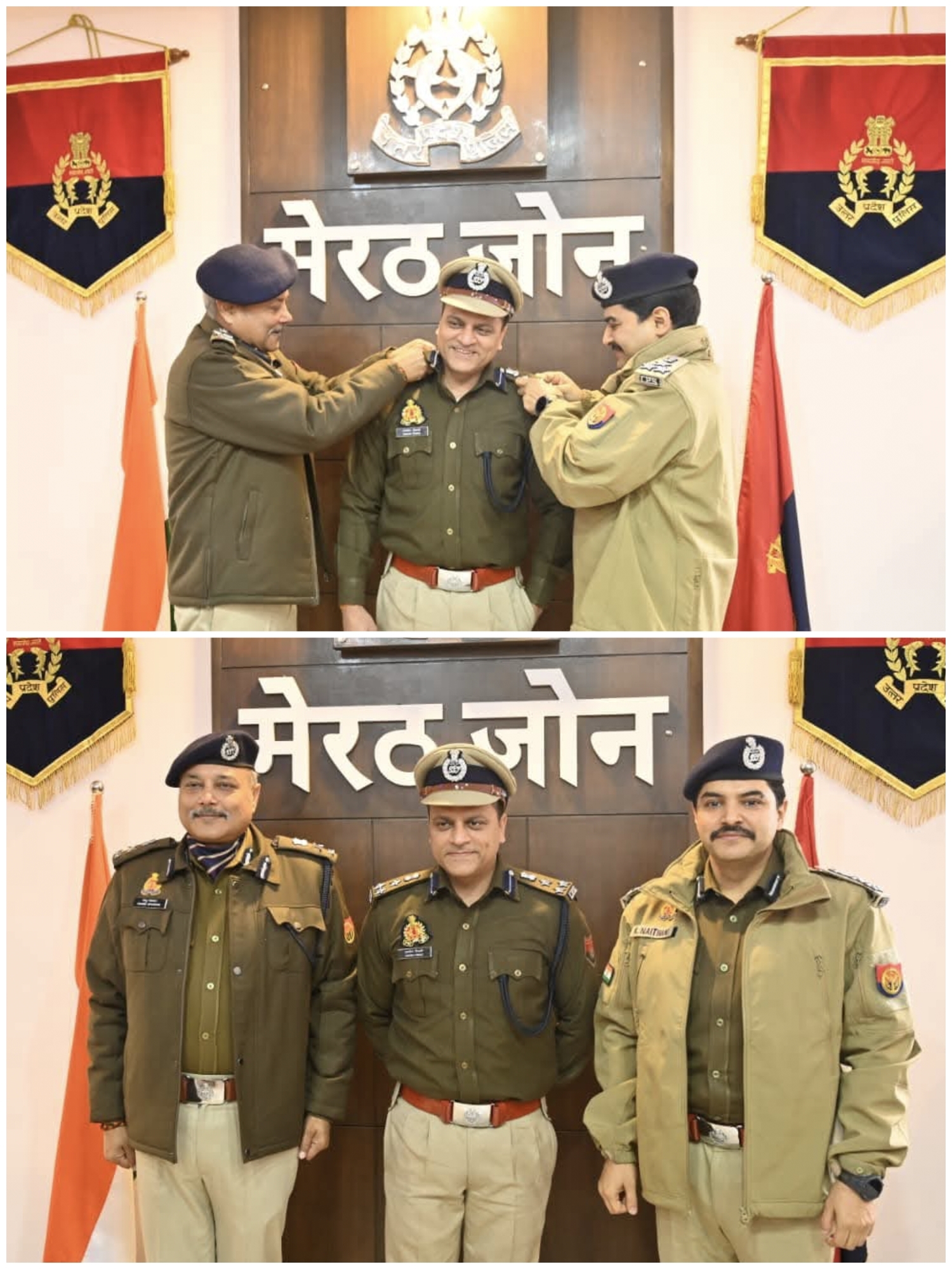 इस अवसर पर श्री भानू भास्कर, अपर पुलिस महानिदेशक, जोन मेरठ एवं श्री कलानिधि नैथानी, पुलिस उपमहानिरीक्षक, मेरठ परिक्षेत्र द्वारा उनके कंधों पर प्रतीक चिन्ह (स्टार) लगाकर हार्दिक शुभकामनाएँ दी गईं तथा उनके उज्ज्वल भविष्य, सफल कार्यकाल एवं उत्कृष्ट नेतृत्व की कामना की गई।