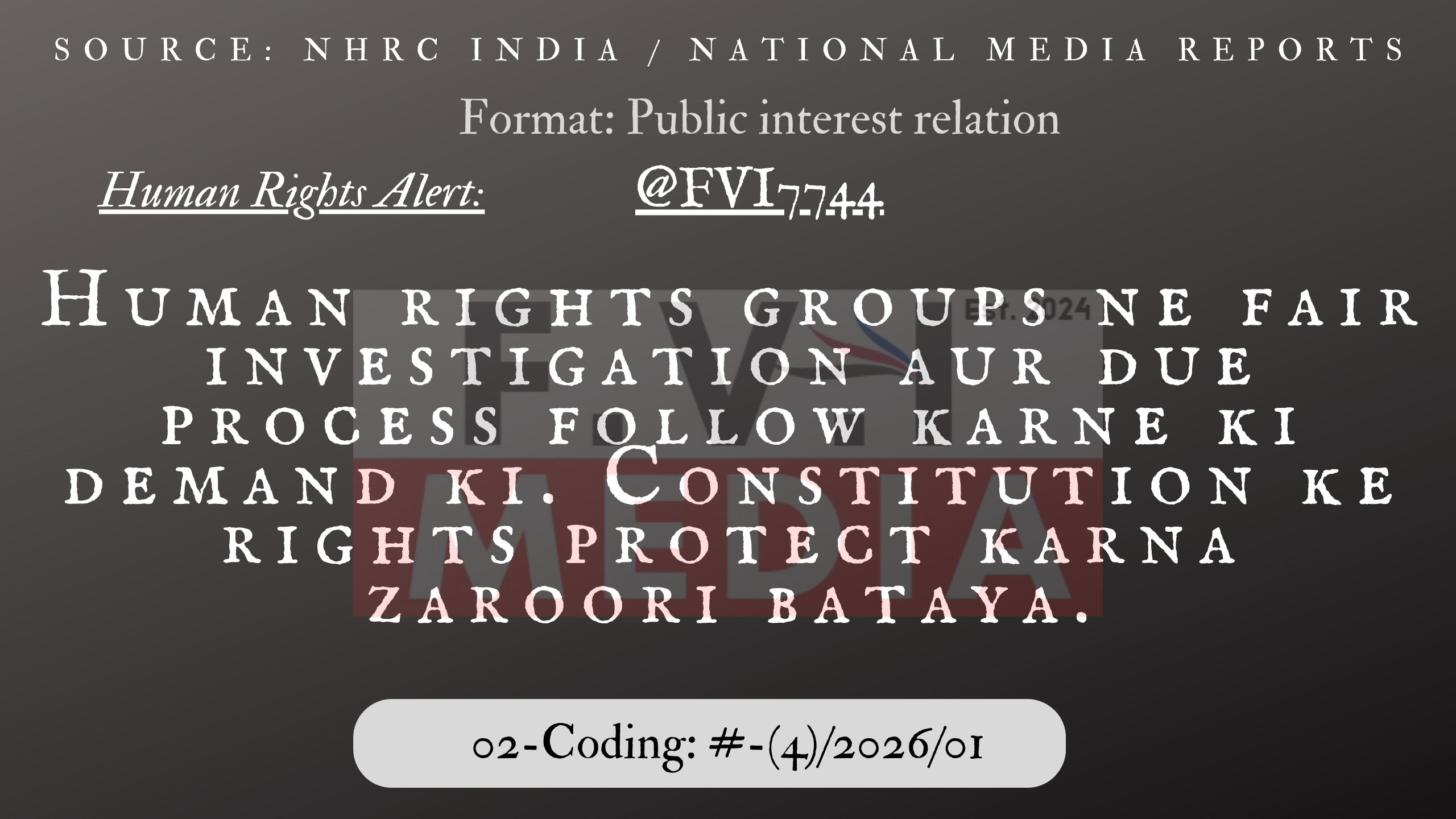 Human rights groups ne fair investigation aur due process follow karne ki demand ki. Constitution ke rights protect karna zaroori bataya.
