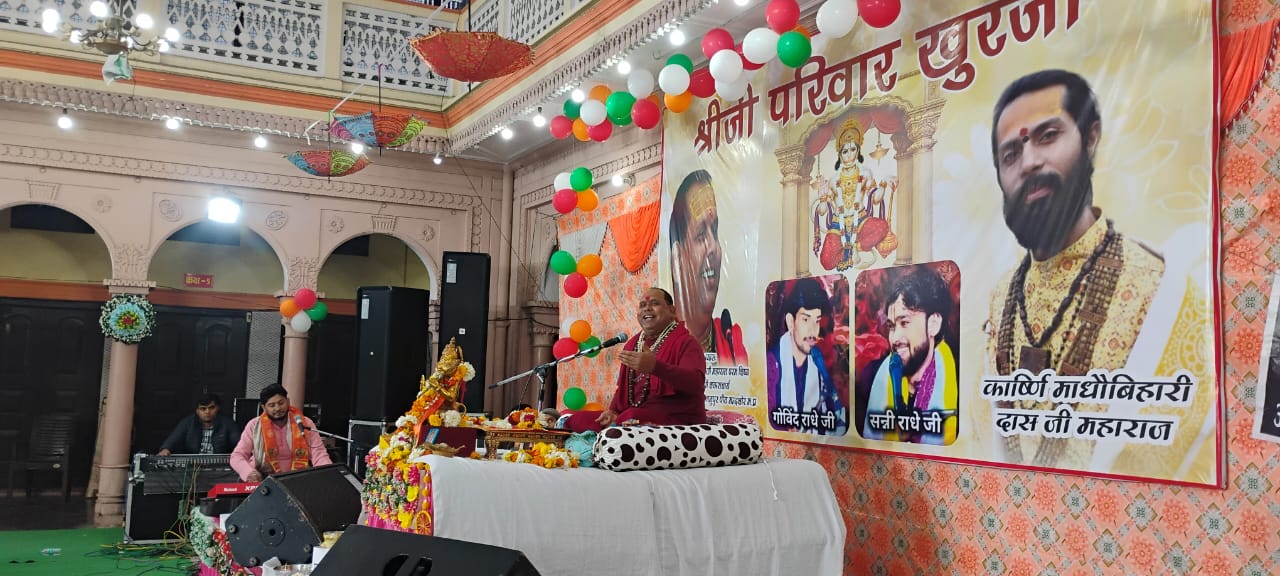 बुलंदशहर। खुर्जा के मुरारी लाल की धर्मशाला में श्रीजी परिवार का दो दिवसीय प्रथम वार्षिकोत्सव धूमधाम से मनाया गया। वार्षिकोत्सव के अवसर पर आचार्य श्री अतुल कृष्ण जी महाराज के मुखारविंद से हनुमंत लाल की कथा का श्रोताओं ने श्रवण किया। इसी के साथ ही अनेक संकीर्तन मण्डलियों द्वारा संकीर्तन के भजनों पर लोगों को थिरकने को मजबूर कर दिया। श्रीजी परिवार के सचिव बसंत कानोडिया ने बताया कि श्रीजी परिवार का यह प्रथम वार्षिकोत्सव है,जो दो दिन मनाया जाएगा। जिसमें कथा व्यास आचार्य श्री अतुल कृष्ण जी महाराज द्वारा हनुमंत लाल की कथा का वर्णन किया जा रहा है। वहीं वृंदावन से पधारे कार्ष्णि माधो बिहारी दास जी व गब्बर भैया की भजन मंडली ने भजनों की अपनी प्रस्तुतियां देकर पंडाल को भक्तिमय बना दिया। उन्होंने बताया कि श्रीजी परिवार के स्थानीय भजन गायकों ने बाबा हनुमान जी के भजनों की सुंदर सुंदर अनेक प्रस्तुतियां दी। जिससे पंडाल भक्तिमय बन गया।कार्यक्रम से पूर्व पण्डित ओम प्रकाश शास्त्री द्वारा विधि विधान से श्रीजी परिवार के सदस्यों से पूजा अर्चना कराई। वहीं पूजा अर्चना के बाद कार्यक्रम विधिवत से शुरू हुआ। इस अवसर पर गुरुद्वारा सिंह सभा एवं बागेश्वर धाम समिति खुर्जा के सदस्यों का सम्मान किया गया। इस अवसर पर पियूष अग्रवाल, बसंत कानोड़िया