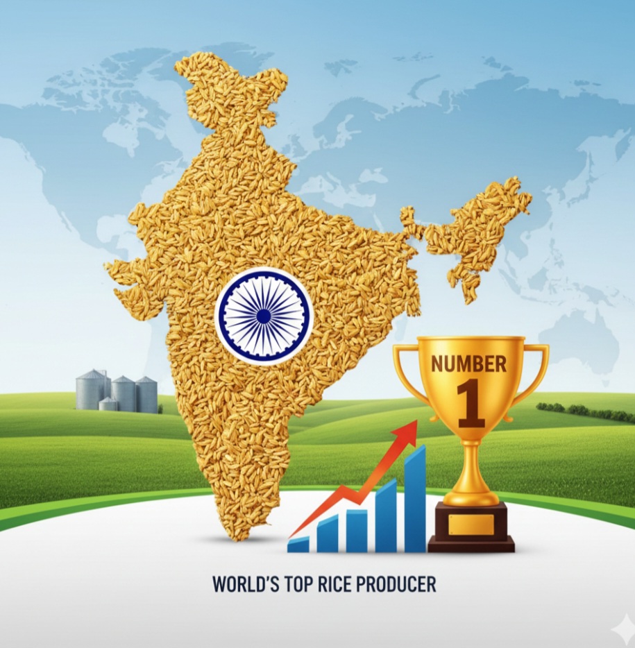 న్యూఢిల్లీ: వ్యవసాయ రంగంలో భారత్ సరికొత్త చరిత్ర సృష్టించింది. 2025-26 గణాంకాల ప్రకారం, పొరుగు దేశం చైనాను వెనక్కి నెట్టి ప్రపంచంలోనే అతిపెద్ద బియ్యం ఉత్పత్తిదారుగా భారతదేశం అవతరించింది.