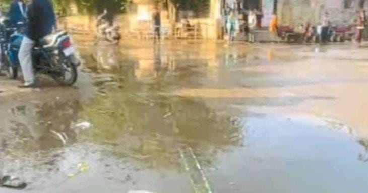 डबल सीसी रोड के नीचे पाइपलाइन लीकेज, सियाणा क्षेत्र में पेयजल संकट गहराया
