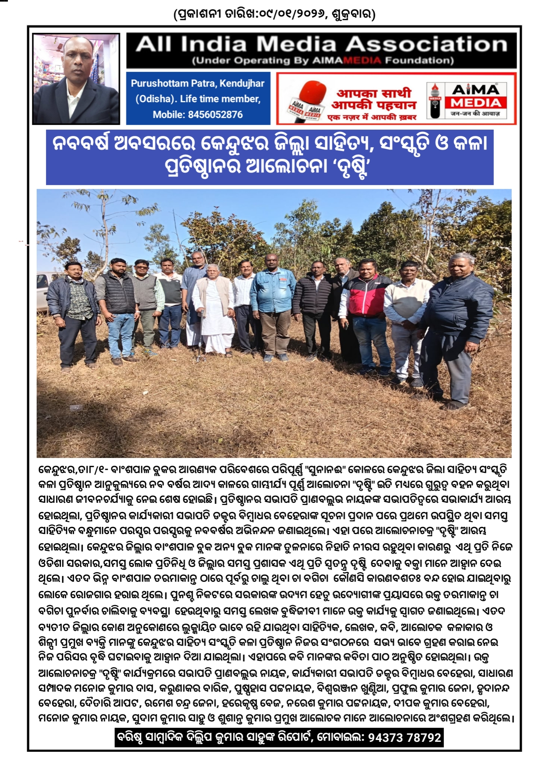 ନବବର୍ଷ ଅବସରରେ କେନ୍ଦୁଝର ଜିଲ୍ଲା ସାହିତ୍ୟ,ସଂସ୍କୃତି ଓ କଳା ପ୍ରତିଷ୍ଠାନର ଆଲୋଚନା ‘ଦୃଷ୍ଟି’।
