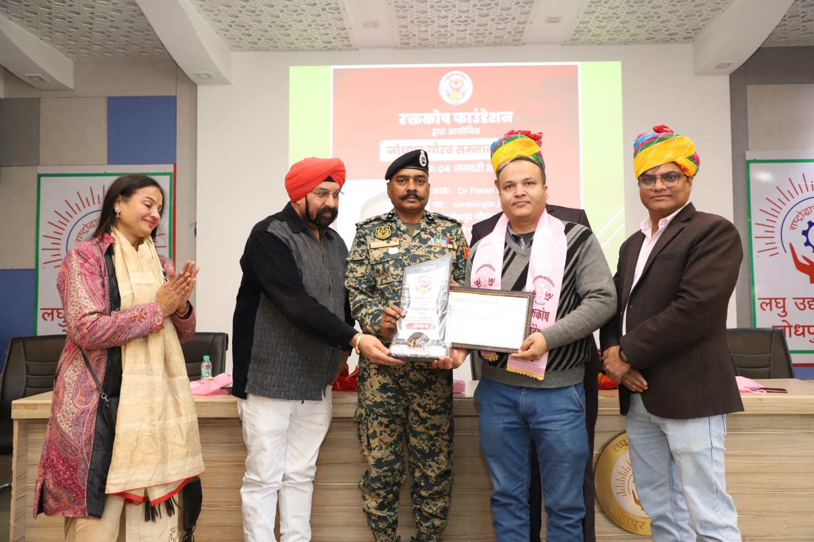 रक्तकोष फाउंडेशन जोधपुर के तत्वावधान में आज जोधपुर गौरव सम्मान समारोह का आयोजन लघु उद्योग भारती, ऑडिटोरियम में किया गया। समारोह में विभिन्न क्षेत्रों समाज सेवा, रक्तदान, पत्रकारिता, चिकित्सा, नर्सिंग, खेलकूद, पुलिस, बीएसएफ, पर्यावरण संरक्षण, शिक्षा एवं कृषि सहित विभिन्न क्षेत्रों में उत्कृष्ट कार्य करने वाले 51 प्रतिभाशाली व्यक्तियों एवं संस्थाओं को सम्मानित किया गया।