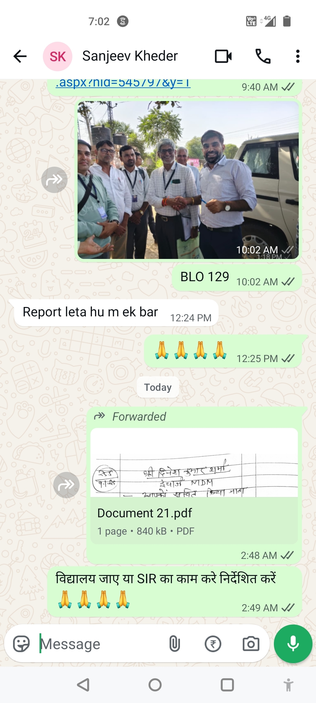 श्रीमान निर्वाचन रजिस्ट्रेशन पदाधिकारी एवं उपखंड अधिकारी शाहपुरा द्वारा BLO भाग संख्या 129 के बूथ लेवल अधिकारी को आगामी आदेश तक SIR 2025 का कार्य करने के लिए निर्देशित किया गया है। श्रीमान प्रधानाचार्य बाबूलाल जाट राजकीय उच्च माध्यमिक विद्यालय राडावास द्वारा पोषाहार प्रभारी दिनेश कुमार शर्मा को पोषाहार संबंधित कार्य करने के लिए आदेशित किया गया है ।BLO क्या करें?