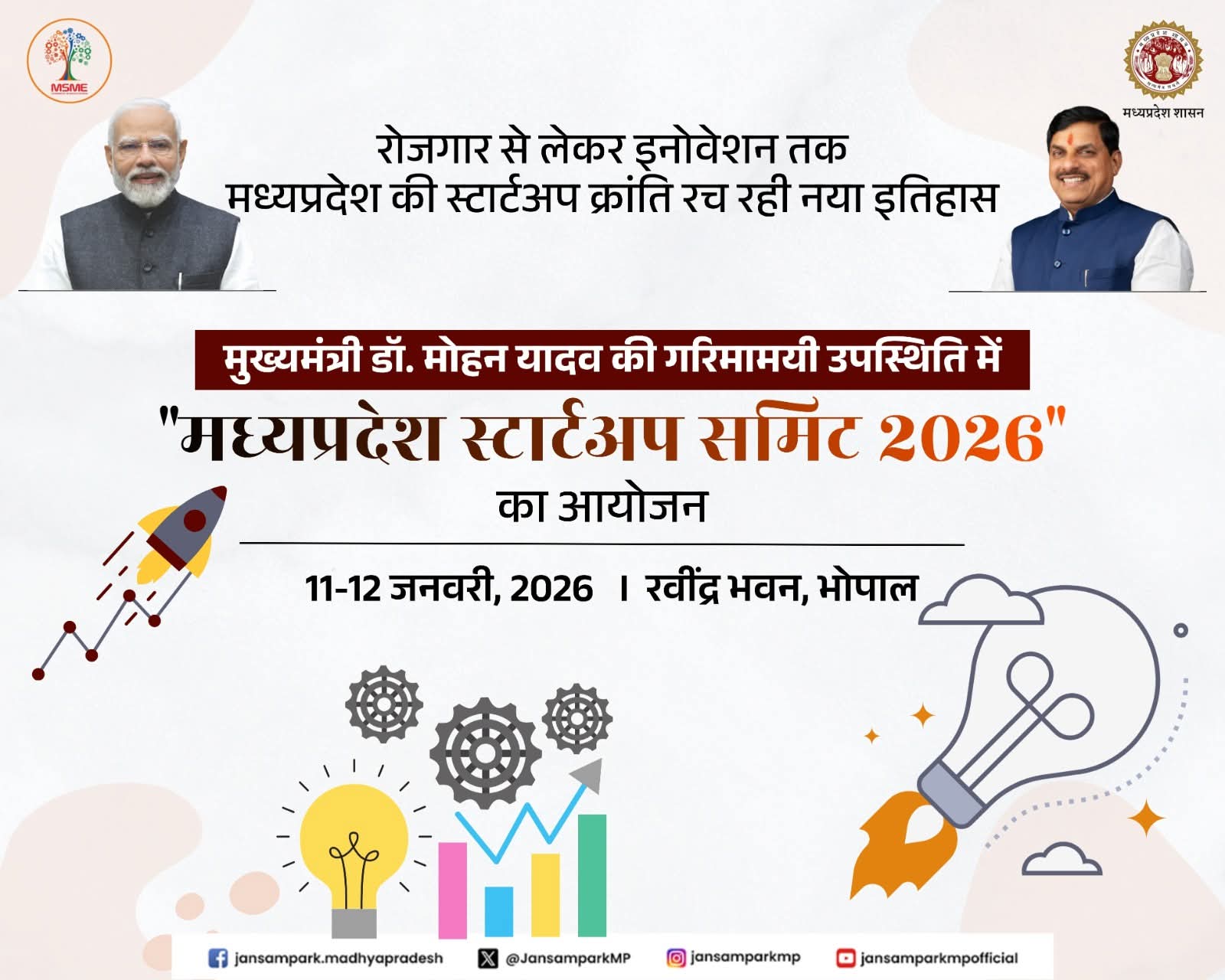 मुख्यमंत्री डॉ. मोहन यादव की गरिमामयी उपस्थिति में "मध्यप्रदेश स्टार्टअप समिट 2026" का आयोजन