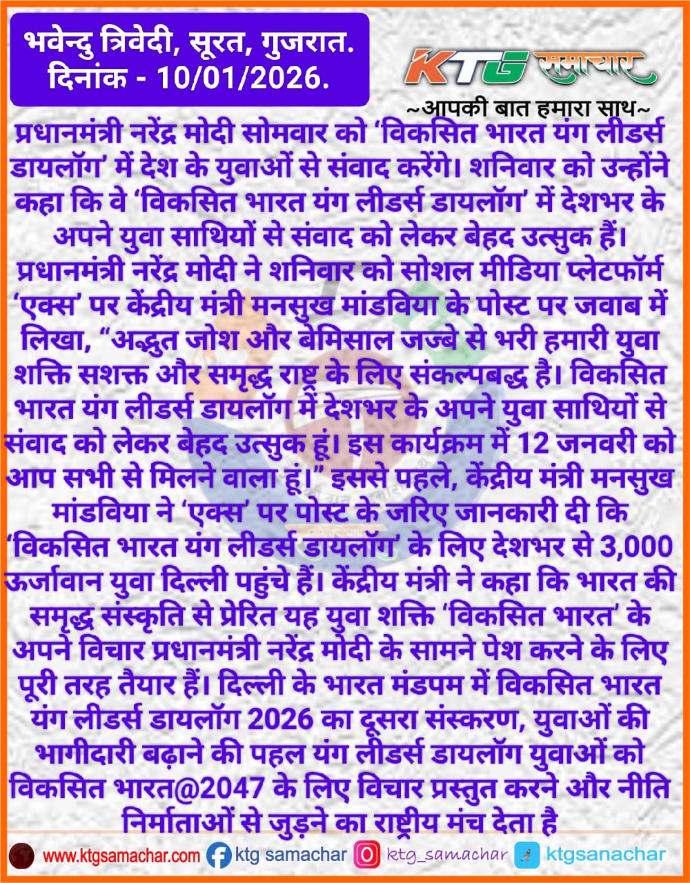 शनिवार को उन्होंने कहा कि वे 'विकसित भारत यंग लीडर्स डायलॉग' में देशभर के अपने युवा साथियों से संवाद को लेकर बेहद उत्सुक है।