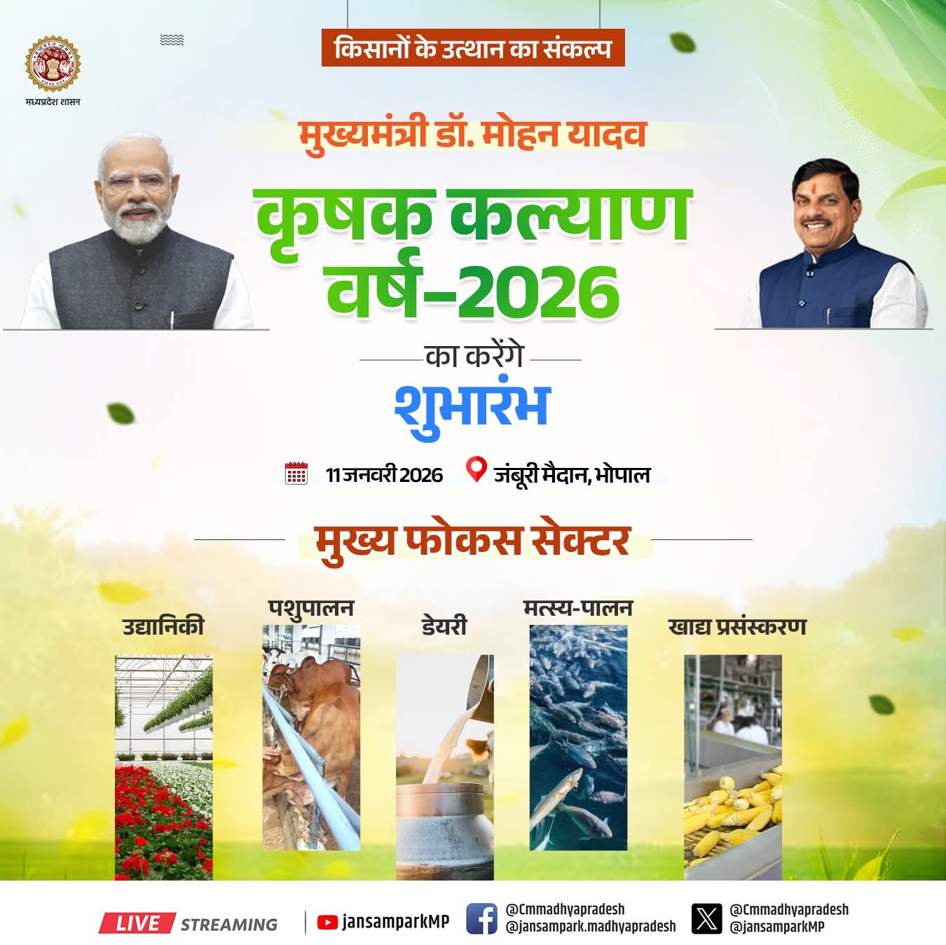 मुख्यमंत्री डॉ मोहन यादव करेंगे कृषक वर्ष 2026 का शुभारंभ