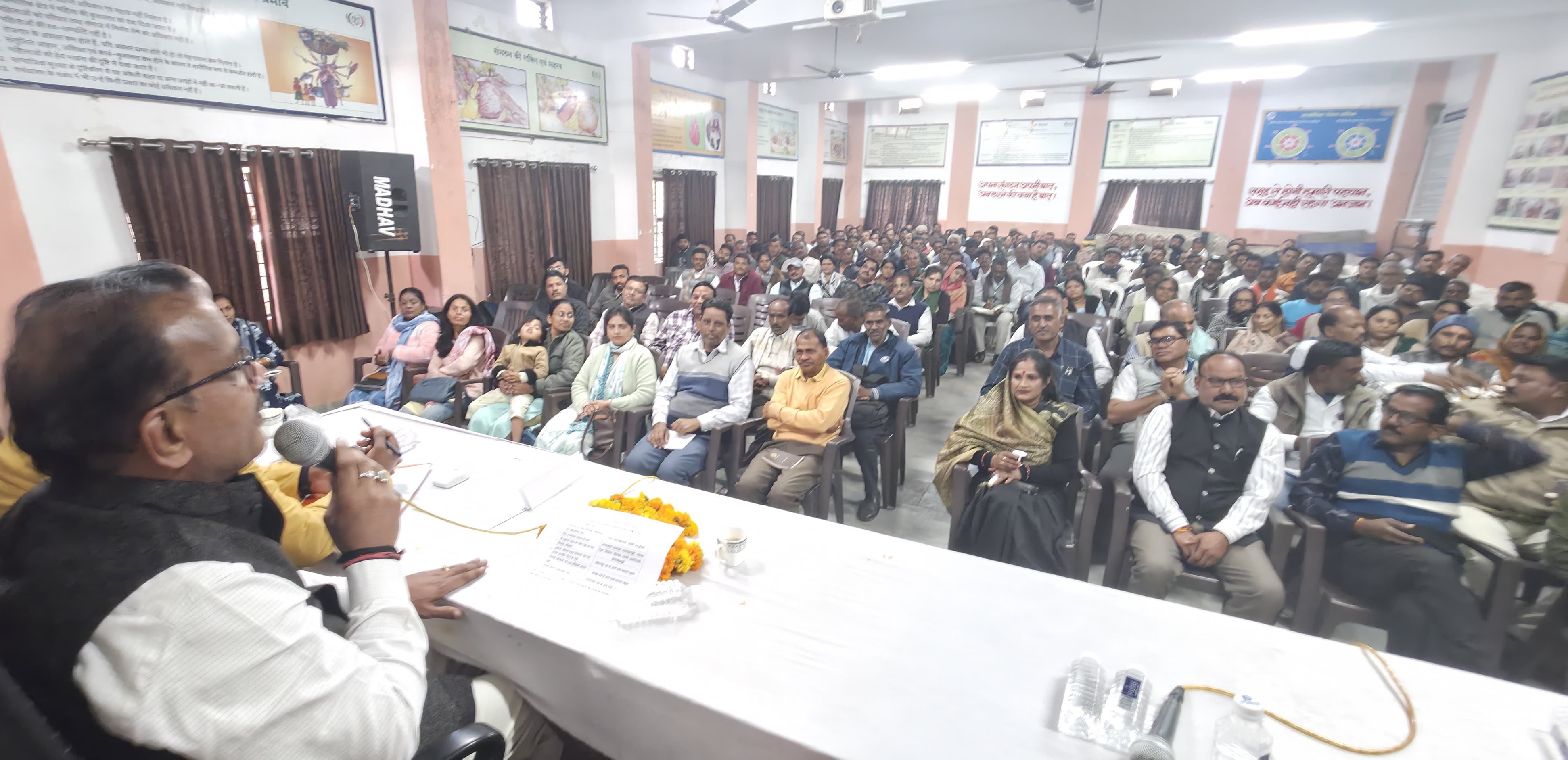 नर्मदापुरम / शनिवार को जनपद पंचायत माखन नगर के सभाकक्ष में सोहागपुर विधायक विजयपाल सिंह ने मुख्यमंत्री डॉ. मोहन यादव के प्रस्तावित कार्यक्रमों की तैयारियों को लेकर सरपंच, उपसरपंच, महिला एवं बाल विकास, शिक्षा, राजस्व, स्वास्थ्य सहित जनपद पंचायत अंतर्गत विभिन्न विभागों के अधिकारी, जनप्रतिनिधि एवं वरिष्ठजनों के साथ समीक्षा बैठक ली। विधायक विजयपाल सिंह ने बैठक में कहा कि मुख्यमंत्री के कार्यक्रम को भव्य, सुव्यवस्थित एवं सफल बनाने हेतु समन्वय एवं आवश्यक व्यवस्थाओं पर विस्तार से आवश्यक चर्चा की। उन्होंने सभी विभागों को आपसी तालमेल के साथ दायित्वों के निर्वहन के निर्देश दिए। इस अवसर अपर जनपद पंचायत अध्यक्ष श्रीमती सावित्री बाई परनामे, जनपद सीईओ रंजीत तराम, तहसीलदार महेंद्र चौहान, वरिष्ठ सत्यनारायण पाराशर, फूलचंद यादव, इंदर सिंह मीना, मंडल अध्यक्ष विपिन यादव, संजय अग्रवाल, सरपंच संघ अध्यक्ष कृष्ण कुमार झा, संतोष सिंह राजपूत युवा मोर्चा जिला उपाध्यक्ष, उमेश यादव जिला पंचायत सदस्य सहित सम्बन्धित विभाग के अधिकारी कर्मचारी उपस्थित रहे एवं आयोजन सम्पन्न हुआ।