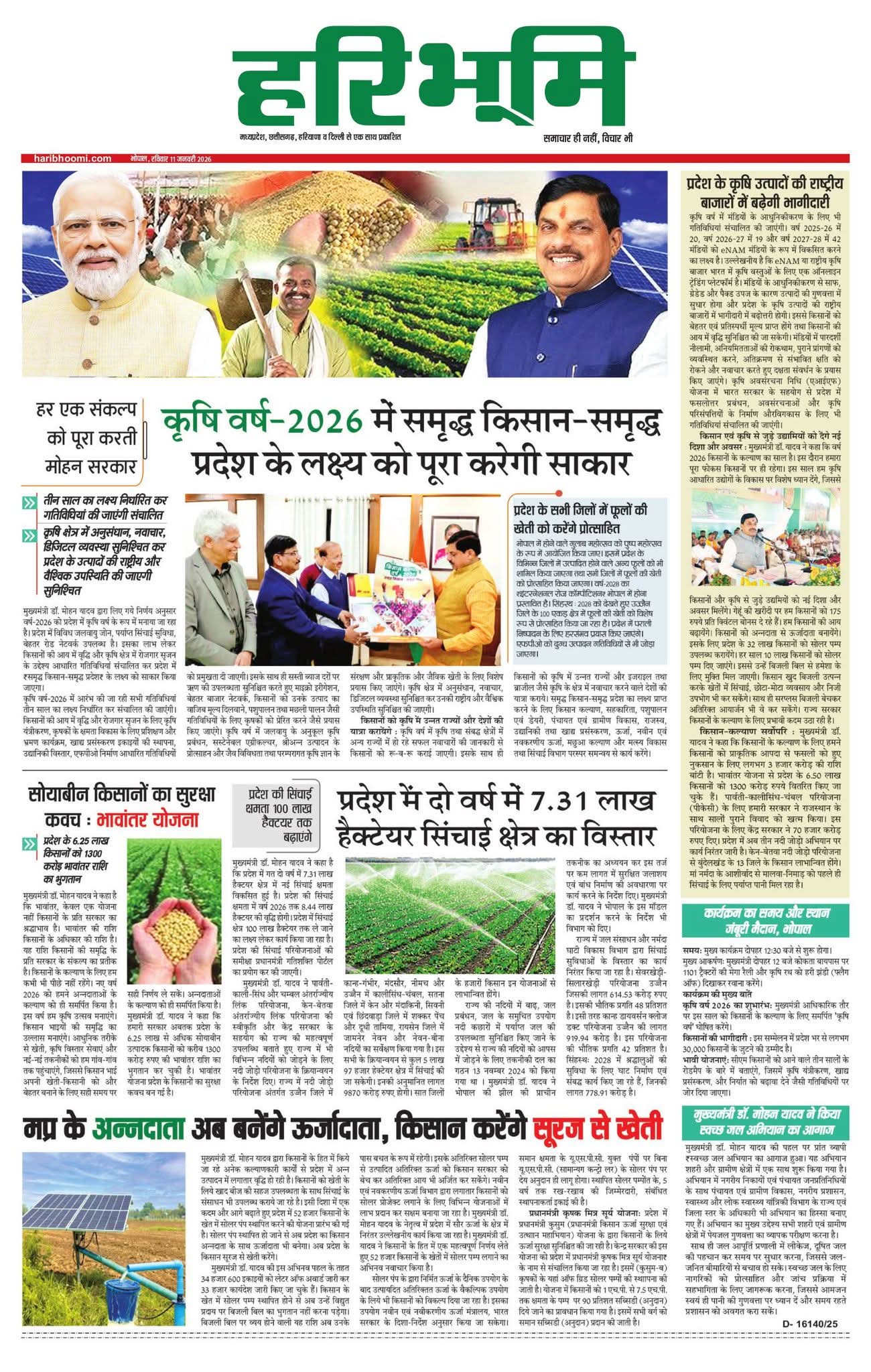 कृषि वर्ष 2026 हर संकल्प को पूरा करती डाॅ. मोहन यादव सरकार
