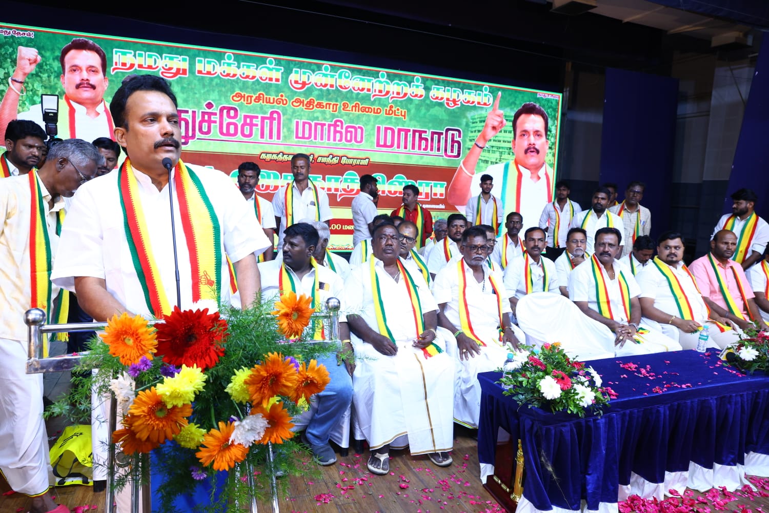 பாண்டிச்சேரியில் உள்ள 30 தொகுதிகளில் எங்களின் பலம் என்ன என்று எங்களுக்கு தெரியும் எங்களின் ஆதரவு இல்லாமல் பாண்டிச்சேரியில் ஆட்சி அமைக்க முடியாதுஎன்பதை ஆணித்தரமாக கூறுகிறேன்.பாண்டிச்சேரியில் முதல் மாநில மாநாடு அது வெற்றி மாநாடாக அமைந்துள்ளது. பாண்டிச்சேரி மக்களின் குரலாக நமது மக்கள் முன்னேற்ற கழகம் ஒலித்துக் கொண்டிருக்கும்.வருகின்ற சட்டமன்றத் தேர்தலில்