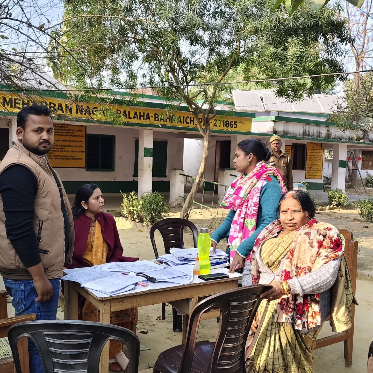 उपजिलाधिकारी नानपारा मोनालिसा जौहरी द्वारा *भाग संख्या 179 व 180 प्रा0वि0 मेहरबान नगर एवं 156 से 160 कृषि उत्पादन मण्डी समिति नानपारा* का निरीक्षण किया गया। निरीक्षण में बी0एल0ओ0 ‚सुपरवाइजर व बी0एल0ए0 और अन्य मतदाता गण उपस्थित मिले। उपजिलाधिकारी ने बताया कि मेगा कैंप का मुख्य उद्देश्य मतदाता सूची को त्रुटिरहित बनाना है। कैंप में उपस्थित बीएलओ द्वारा आलेख्य निर्वाचक नामावली (ड्राफ्ट सूची) को पढ़कर सुनाया गया। छूटे हुए पात्र लोग अपना नाम जुड़वाने के लिए फार्म-6 नाम हटाने के लिए फार्म-7 या किसी संशोधन के लिए फार्म-8 जमा करने हेतु सबको जानकारी दी गई। एसडीएम नानपारा मोनालिसा जौहरी ने खुली बैठक में बीएलओ के अलावा राजनीतिक दलों के बूथ लेवल एजेंट, लेखपाल, सुपरवाइजर, सहायक निर्वाचन रजिस्ट्रीकरण अधिकारी को आवश्यक निर्देश दिये गए। रिपोर्टर Mohd Younus ansari UFT