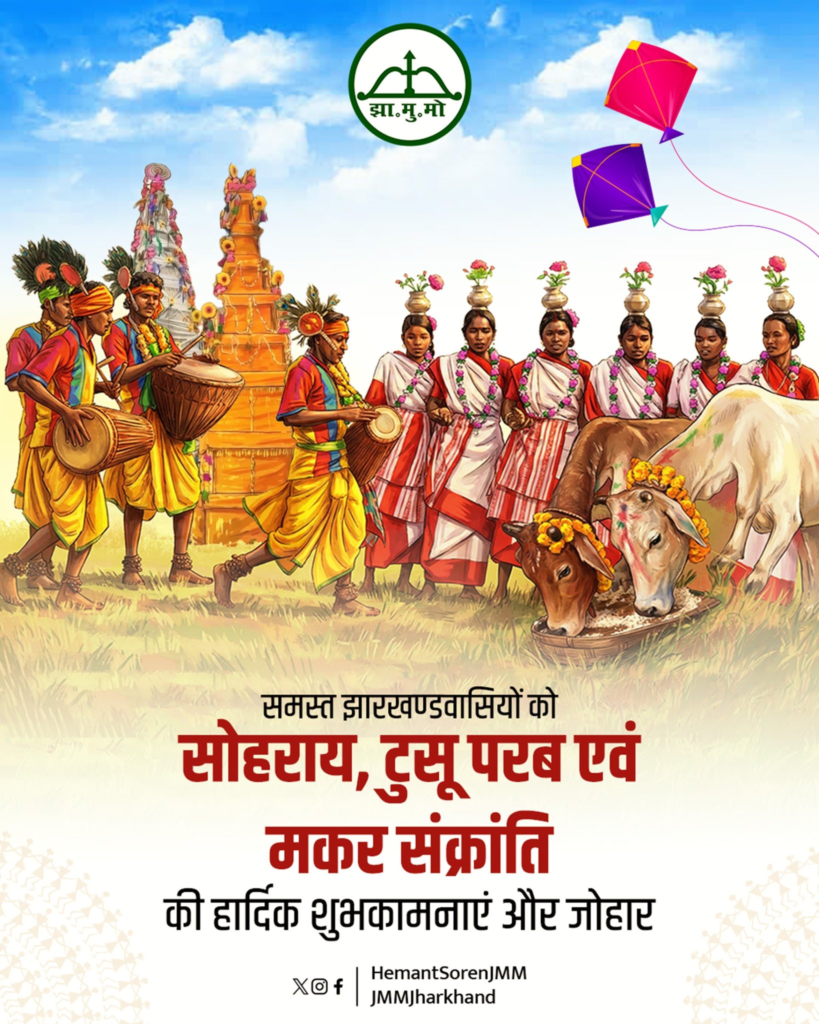 प्रकृति और लोक उत्सव के महापर्व सोहराय, टुसू परब एवं मकर संक्रांति के पावन पर्व की समस्त राज्यवासियों को हार्दिक बधाई, शुभकामनाएं और जोहार।