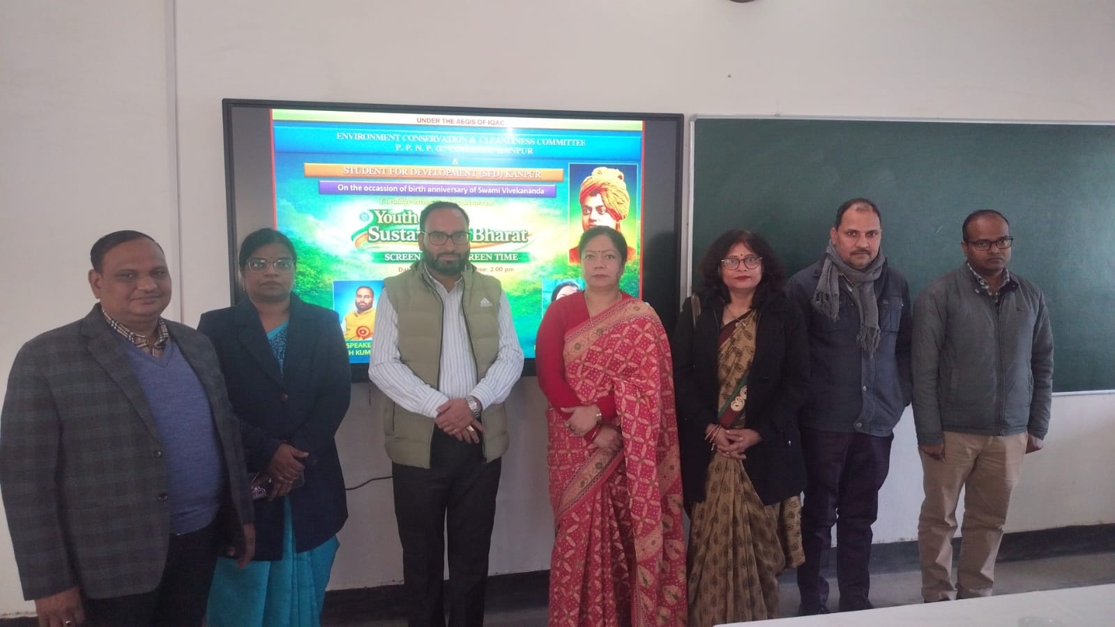 कानपुर। पी. पी. एन. (पी.जी.) कॉलेज में पर्यावरण संरक्षण एवं स्वच्छता समिति द्वारा स्वामी विवेकानंद की जयंती के अवसर पर “यूथ फॉर सस्टेनेबल भारत” विषय पर एक जागरूकता कार्यक्रम का आयोजन किया गया। कार्यक्रम की उप-थीम “स्क्रीन टाइम टू ग्रीन टाइम” रही, जिसका उद्देश्य युवाओं को डिजिटल गतिविधियों से हटाकर पर्यावरण संरक्षण एवं सतत विकास की ओर प्रेरित करना था। कार्यक्रम का शुभारंभ महाविद्यालय के प्राचार्य प्रो. अनूप कुमार सिंह ने की। इस अवसर पर उन्होंने कहा कि स्वामी विवेकानंद के विचार आज के युवाओं के लिए अत्यंत प्रासंगिक हैं और पर्यावरण संरक्षण में युवाओं की भूमिका अत्यंत महत्वपूर्ण है।