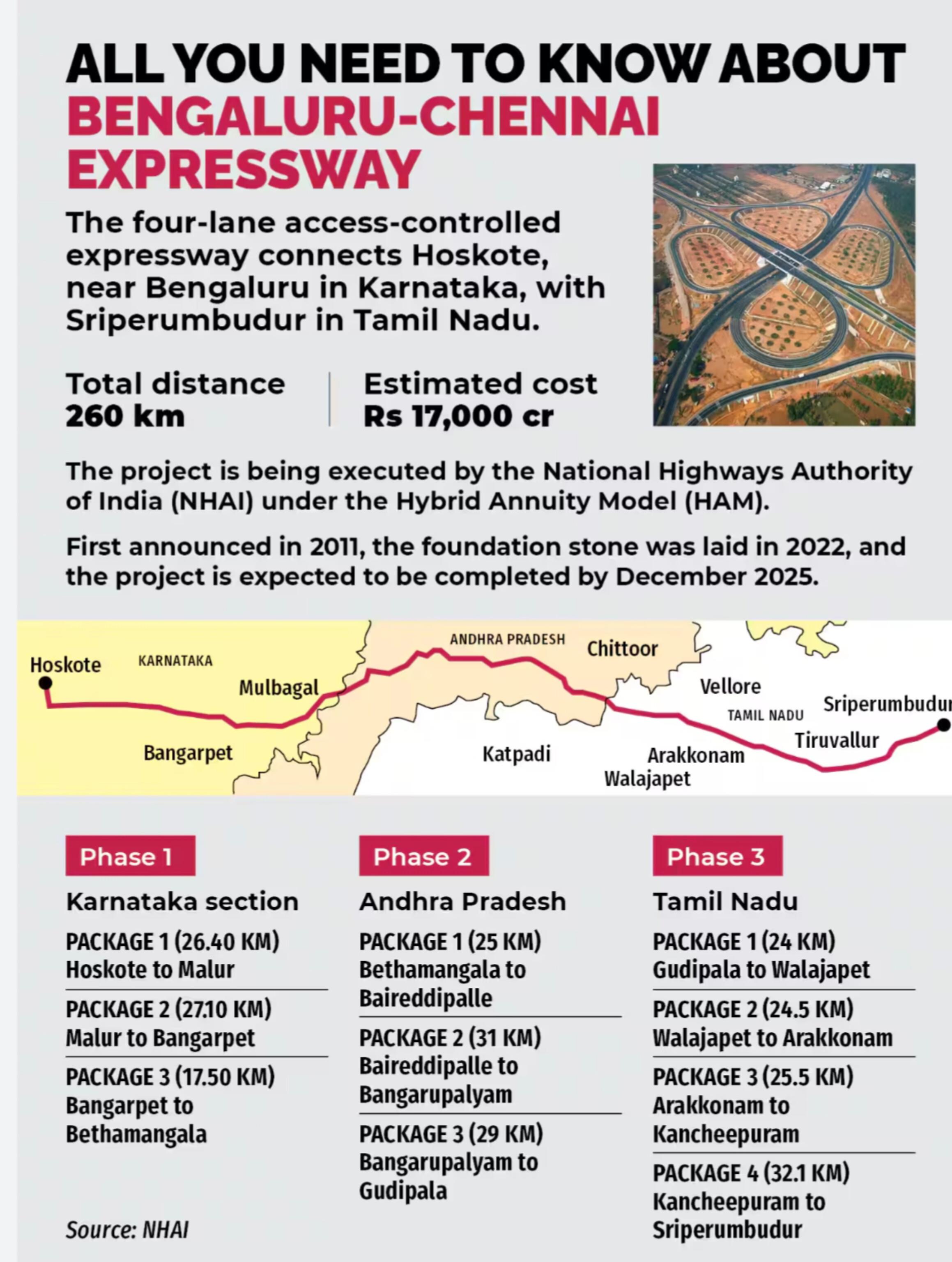 బెంగళూరు-హోస్కోట్ నుండి చెన్నై-శ్రీపెరుంబుదూర్ వరకు ఎక్స్‌ప్రెస్‌వే