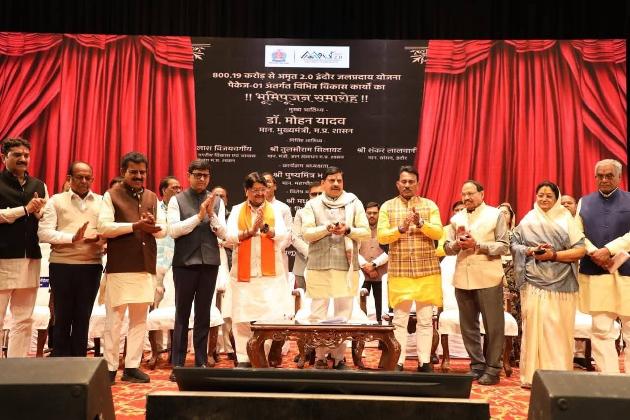 मुख्यमंत्री डॉ मोहन यादव ने इंदौर में जलप्रदाय योजना के विभिन्न विकास कार्यों के भूमिपूजन कार्यक्रम का शुभारंभ दीप प्रज्ज्वलन कर किया।