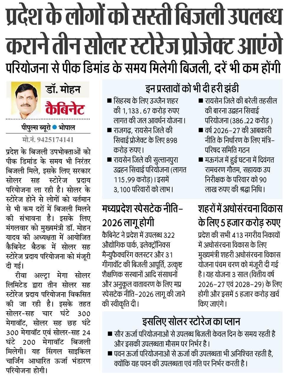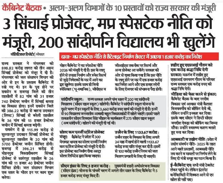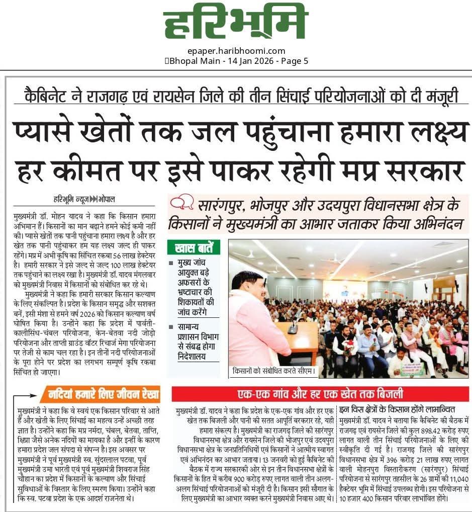 प्यासे खेतों तक जल पहुंचाना हमारा लक्ष्य : मुख्यमंत्री डॉ. मोहन यादव🔹कैबिनेट ने राजगढ़ एवं रायसेन जिले की तीन सिचांई परियोजनाओं को दी मंजूरीDr Mohan Yadav#JansamparkMP