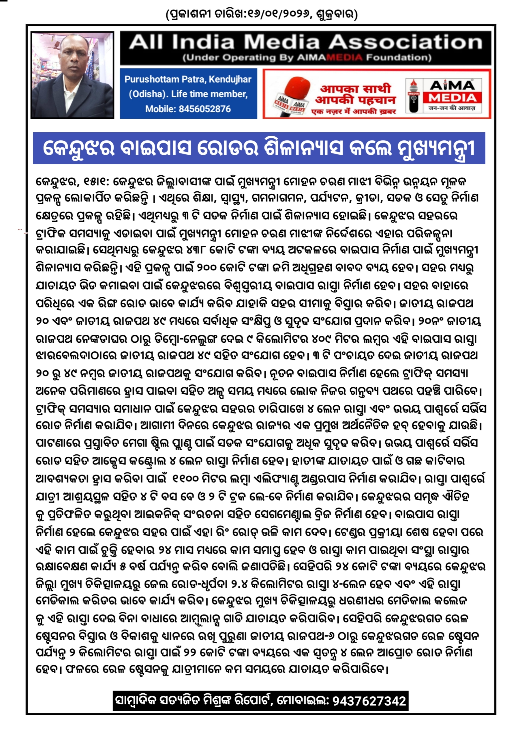 ସାମ୍ବାଦିକ ସତ୍ୟଜିତ ମିଶ୍ରଙ୍କ ରିପୋର୍ଟ।
