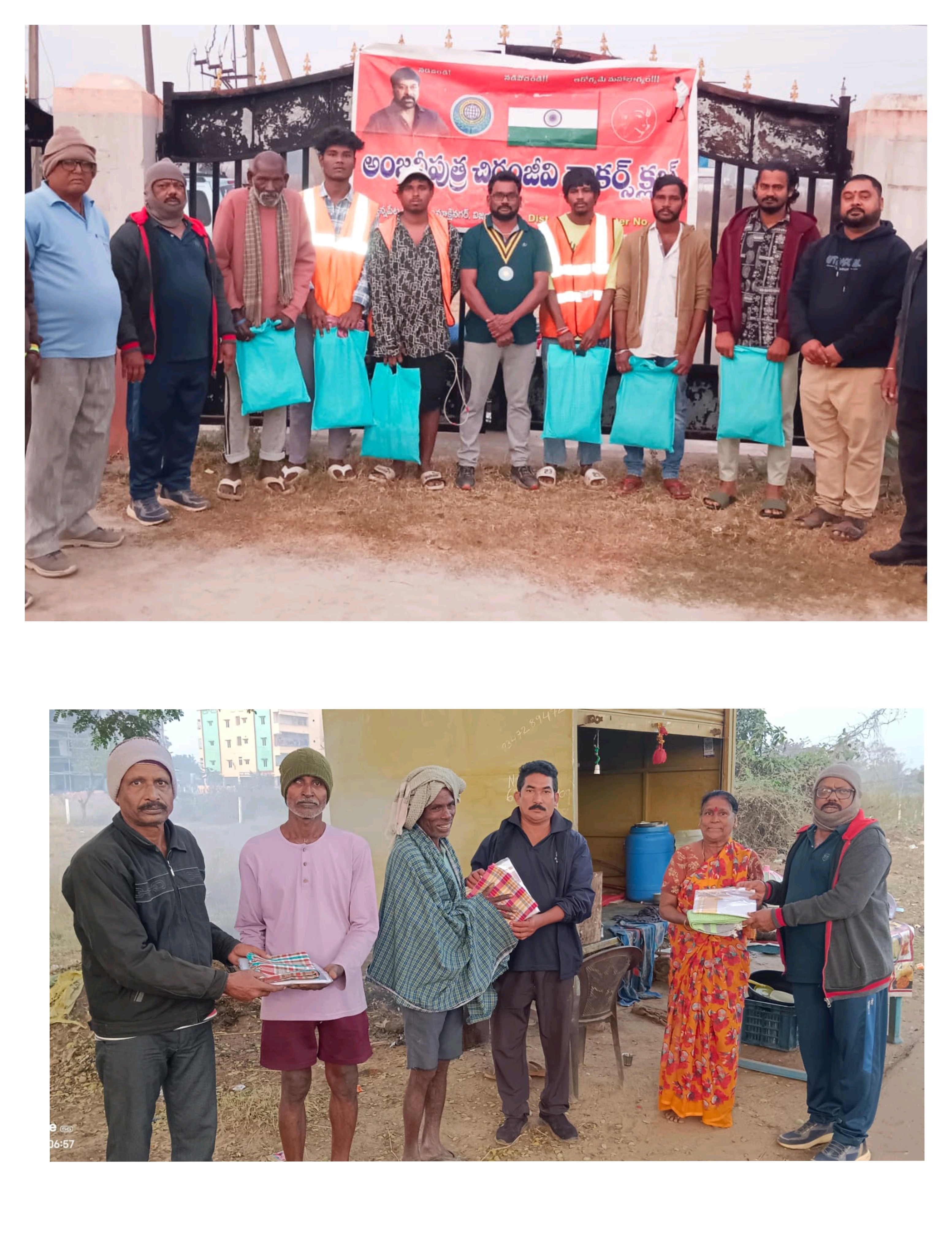 సంక్రాతి పండుగ సందర్బంగా అంజనీపుత్ర చిరంజీవి వాకర్స్ క్లబ్ ఆధ్వర్యంలో క్లబ్ అధ్యక్షులు సి హెచ్ రమణ అయ్యన్నపేట జంక్షన్, జగదాంబ నగర్లో ఉన్న పలువురు వృద్దులకు, పారిశుధ్య కార్మికులకు నూతన వస్త్రాలు, తువ్వాళ్ళు,పంచెలను గురువారం ఉదయం, శుక్రవారం ఉదయం పంచిపెట్టారు.