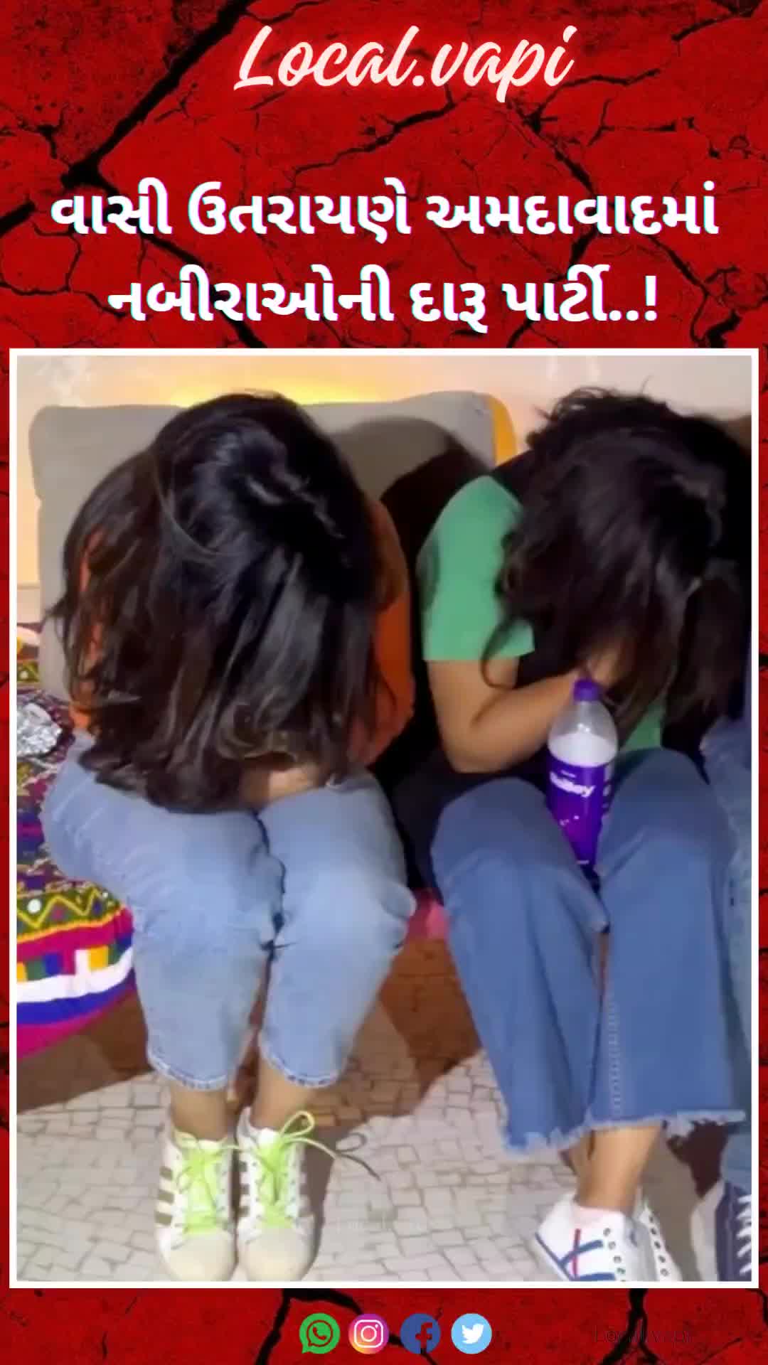વાસી ઉતરાયણે અમદાવાદમાં નબીરાઓની દારૂ પાર્ટી નબીરાઓની દારૂ પાર્ટી પર પોલીસની રેડ 4 યુવતીઓ સહિત 16 નબીરાઓ પોલીસ સકંજામાં પાર્ટીના સ્થળેથી દારૂની બોટલો, હુક્કા સહિતનો મુદ્દામાલ જપ્ત સેન્ટેરિયલ વિસ્ટા બિલ્ડિંગમાં પોલીસની કાર્યવાહી ગુલબાઈ ટેકરા શ્રી સોસાયટી પાસેના બિલ્ડિંગમાં પાર્ટી દારૂ પાર્ટીમાં કેટલાક નામાંકિત લોકો હોવાની પણ ચર્ચા યુનિવર્સિટી પોલીસે તમામની અટકાયત કરીને વધુ કાર્યવાહી હાથ ધરી