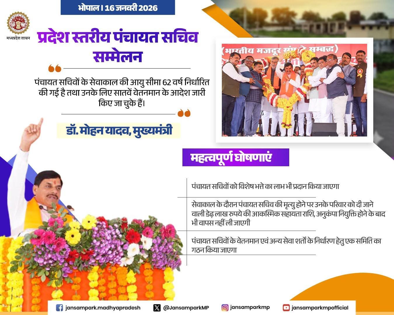मुख्यमंत्री डॉ मोहन यादव द्वारा दशहरा मैदान, भोपाल में आयोजित मध्यप्रदेश पंचायत सचिव महासंघ महासम्मेलन में सहभागिता
