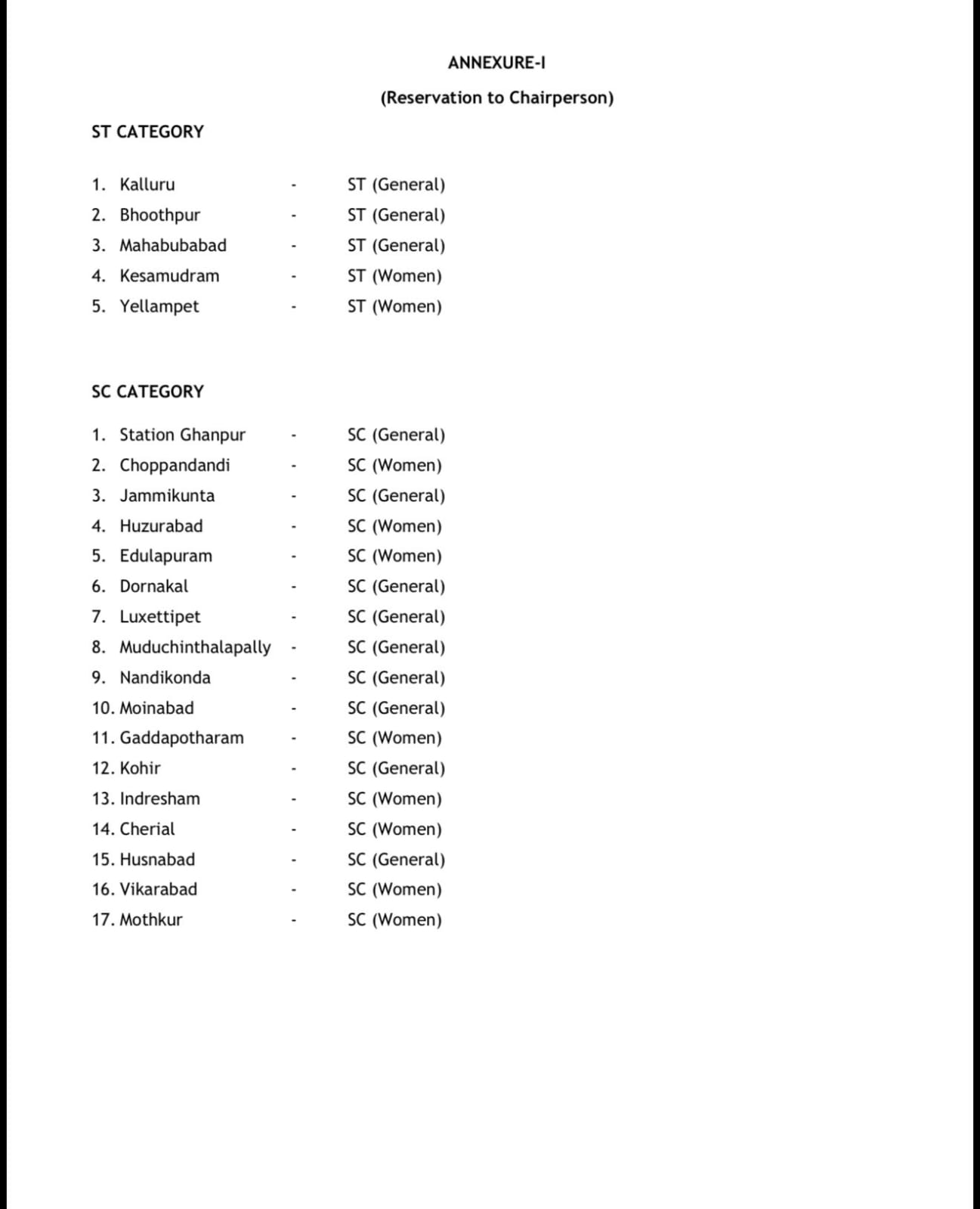 1. Kothagudem - ST (General).