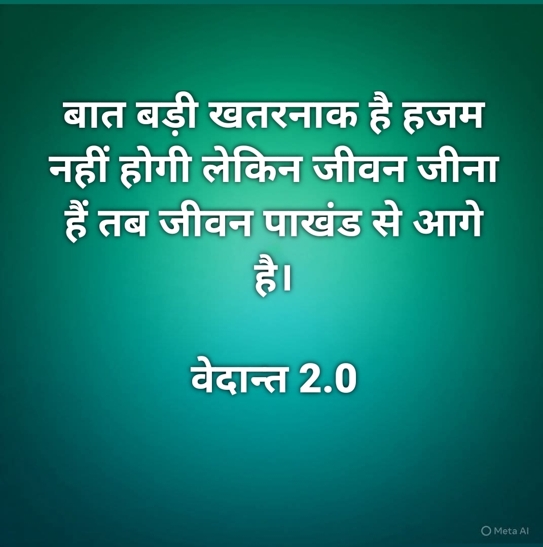 बात बड़ी खतरनाक है हजम नहीं होगी लेकिन जीवन जीना हैं तब जीवन पाखंड से आगे है। वेदान्त 2.0
