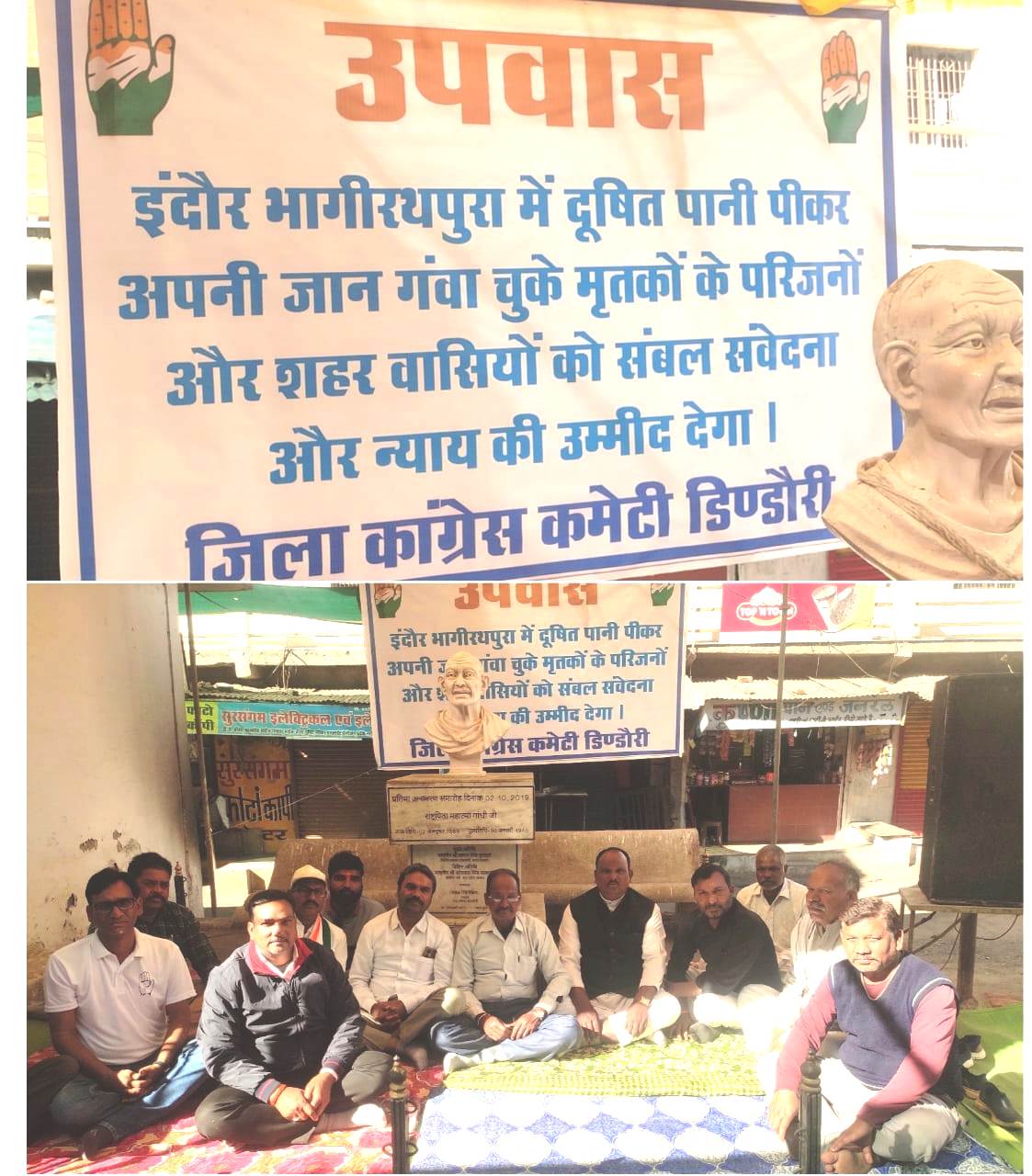 इंदौर में दूषित पानी पीने से हुई मौत के विरोध में जिला कांग्रेस कमेटी डिंडोरी द्वारा रखा गया उपवास