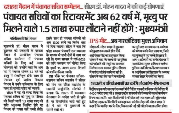 सीएम डॉ. मोहन यादव ने पंचायत सचिवों के सम्मेलन में की घोषणाएं