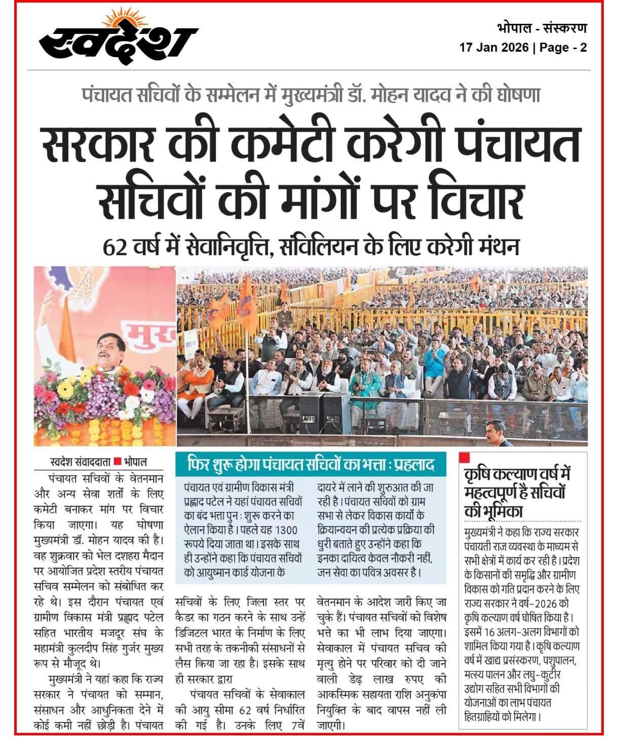 सीएम डॉ मोहन यादव ने पंचायत सचिवों के सम्मेलन में की घोषणाएं