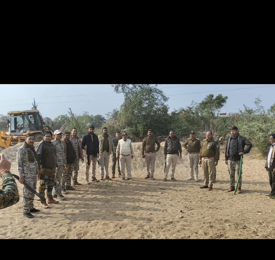 श्योपुर/श्यामपुर के नजदीक अवैध चंबल रेत का भंडारण का नष्टिकरण किया गया वन विभाग ,घड़ियाल विभाग और वीरपुर पुलिस ने मिलकर। अवैध रेत के स्टॉक पर बीरपुर थाना प्रभारी महाराज सिंह बघेल ,वन परिक्षेत्र अधिकारी खाड़ी/श्यामपुर दिनेश कौशल, और घड़ियाल विभाग से दीपक शर्मा ने अपनी–अपनी टीम के साथ मिलकर करीब 50 ट्राली अवैध रेत के स्टॉक को जेसीबी की सहायता से मिट्टी में मिलाया गया और कार्यवाही को दिया अंजाम जिससे रेत माफियाओं में मचा हड़कंप।