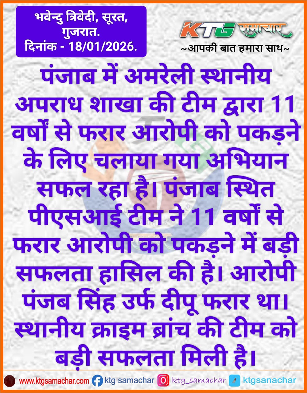 पंजाब में अमरेली स्थानीय अपराध शाखा की टीम ने सफलता हासिल की।