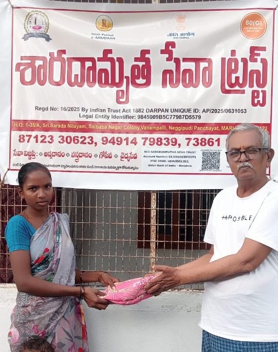 శారదామృత సేవా ట్రస్ట్ ఆధ్వర్యంలో మహిళా యాచకులు మరియు దివ్యాంగులకు చీరల పంపిణీ