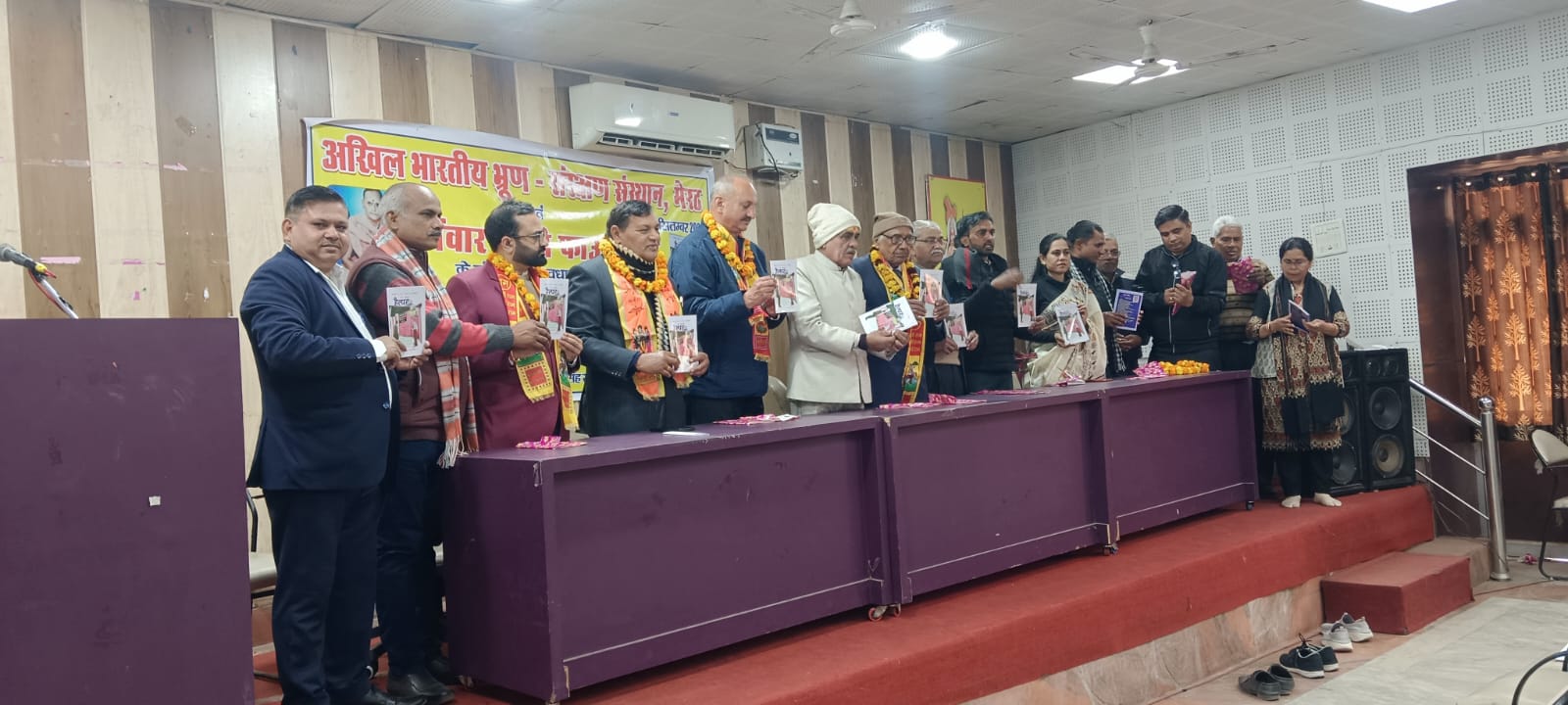 मेरठ। अखिल भारतीय भ्रूण-संरक्षण संस्थान एव पंवार वाणी फाउण्डेशन के संयुकत तत्वावधान तथा कलमपुत्र काव्यकला मंच के संयोजन में दिनांक 18 जनवरी सन् 2026 को प्यारेलाल शर्मा स्मारक, मेरठ के छोटे हॉल में कवि एवं साहित्यकार पंडित हरि नारायण दीक्षित ‘हरि’ के उपन्यास ‘हैल्पर’ का विमोचन अतिथियों द्वारा किया गया। मुख्य अतिथिं श्री अभिमन्यू खन्ना (खन्ना इम्पलेर्स) रहे। साहित्यकार पं. हरिनारायण दीक्षित की धर्मपत्नी स्व. श्रीमती शकुन्तला दीक्षित जी की प्रथम पुण्य स्मृति को समर्पित इस कार्यक्रम की अध्यक्षता पूर्व प्रधानाचार्य श्री सत्यव्रत शर्मा द्वारा की गई। विशिष्ट अतिथि के रूप में श्री महेश शर्मा जी (रा0अध्यक्ष आ.इ.मीडिया एसो.) श्री प्रवीण भड़ाना जी (समाजसेवी) उपस्थित रहे। दीप प्रज्वलन श्री अभिमन्यु खन्ना ने किया। संचालन साहित्यकार एवं इतिहासकार चरण सिंह स्वामी ने किया। उपन्यास को ‘स्वामी चरणदेव पब्लिकेशन’ द्वारा प्रकाशित किया गया।