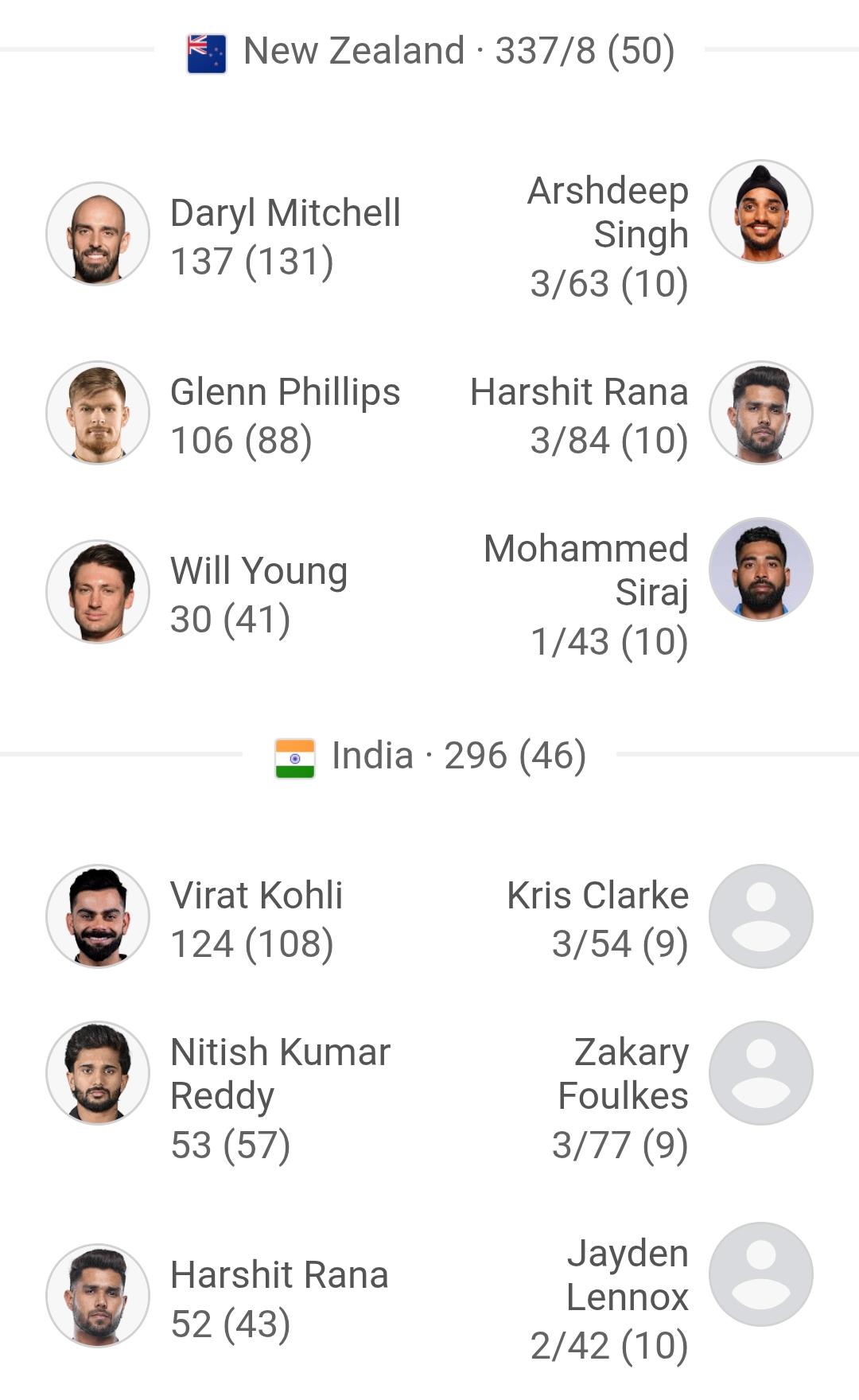In defending the target, New Zealand’s bowlers executed their plans to perfection. Early wickets put India on the back foot, and sustained pressure in the middle overs restricted the scoring rate. Indian batters attempted to rebuild through partnerships, but regular wickets at crucial intervals stalled their progress. The New Zealand pace attack, supported well by the spinners, kept things tight and denied India any late surge.